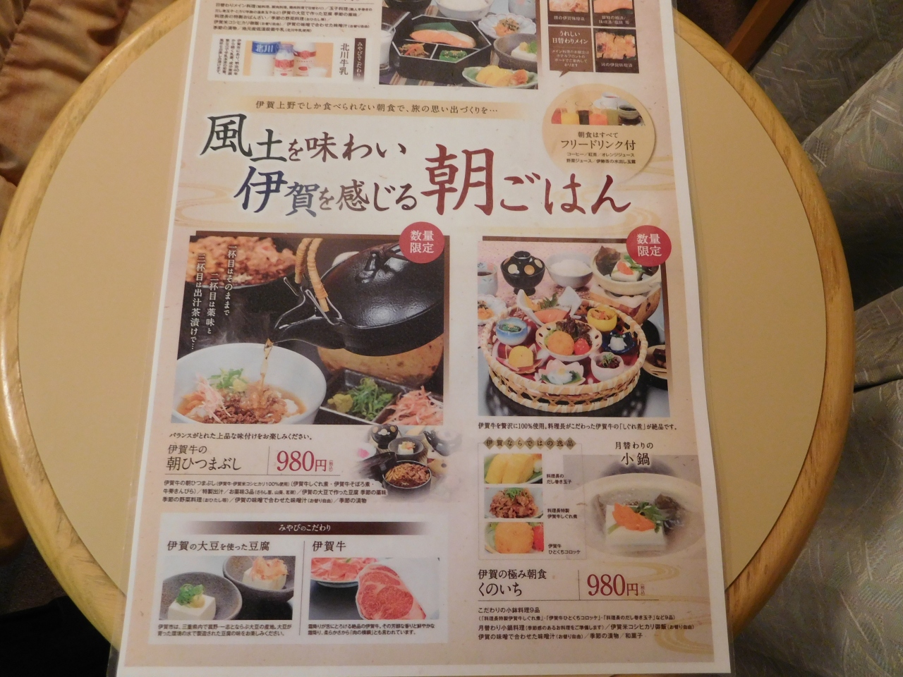 伊賀上野シティホテルの1階にある「しゃぶしゃぶと日本料理」のレストランで、数量限定の朝食を頂きました。「伊賀牛の朝ひつまぶし」と「伊賀の極み朝食 くのいち」の2種類があり、それぞれ注文しましたが、伊賀の味が堪能できて、とても美味しかったです。朝食付きのプランでしたが、差額料金の支払いで変更してもらう事ができました。店員さんもきびきびと対応して頂けて、良かったです。