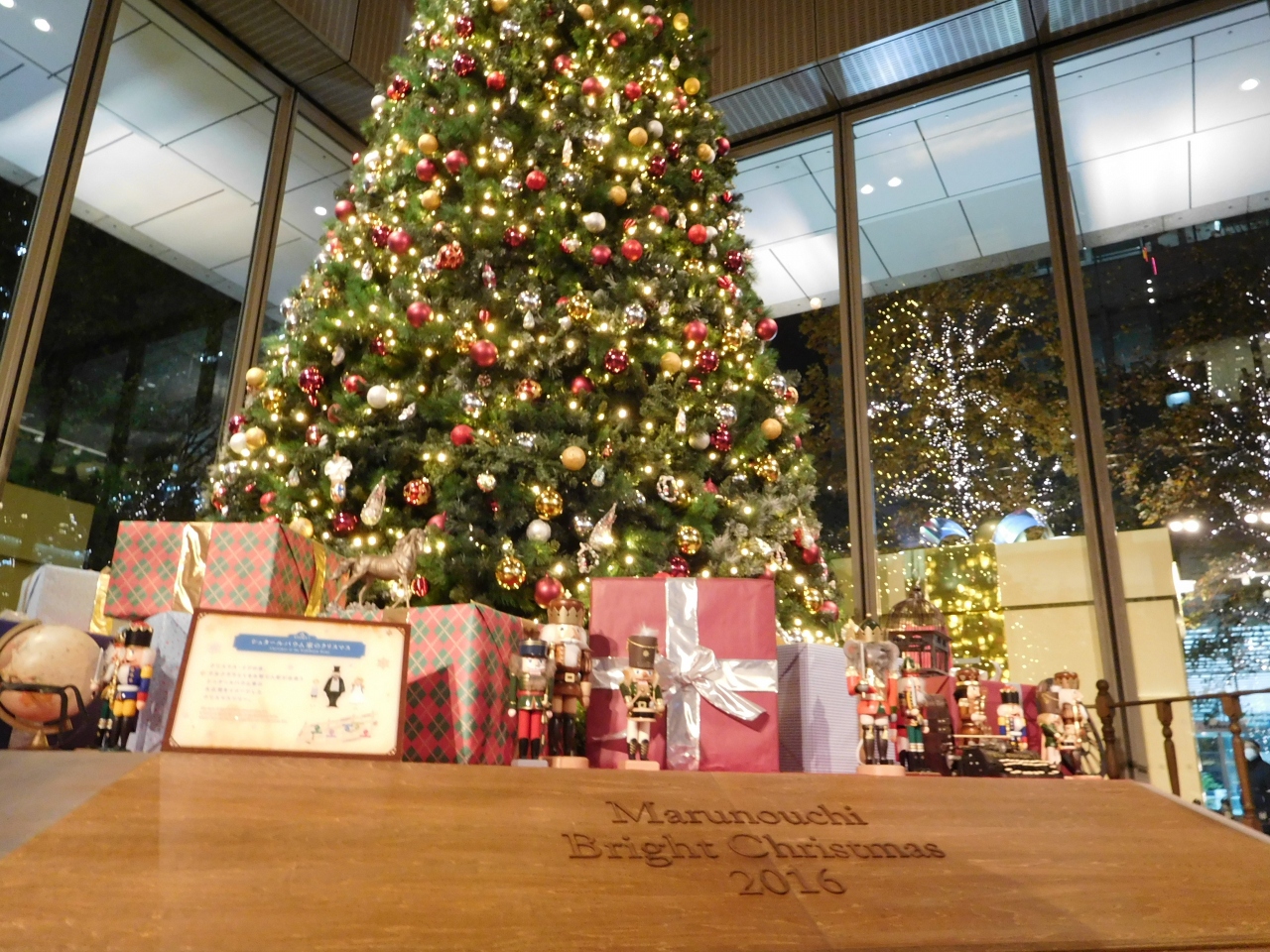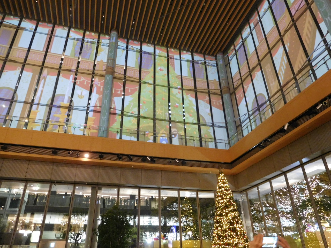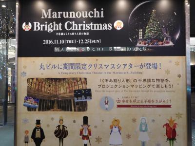 丸ビルで行われる、2016年の期間限定クリスマスイベントは、「くるみ割り人形」がテーマでした。今年は、2階のガラス窓一面に、プロジェクションマッピングシアターが見えるようになっていました。ちょうど丸ビルに入った時に、壁際に人が集まっていたので、何かの列かな?と思ったら、既に映像が始まっていました。パタパタと画面が切り替わって、物語が繰り広げられていました。ショーが終わるとあっという間に人が散ってしまい、閑散とした状態になっていました。上映している間は少し照明を落とすなどした方が、メリハリもあり、もっと見やすいのでは?と思ってしまいました。