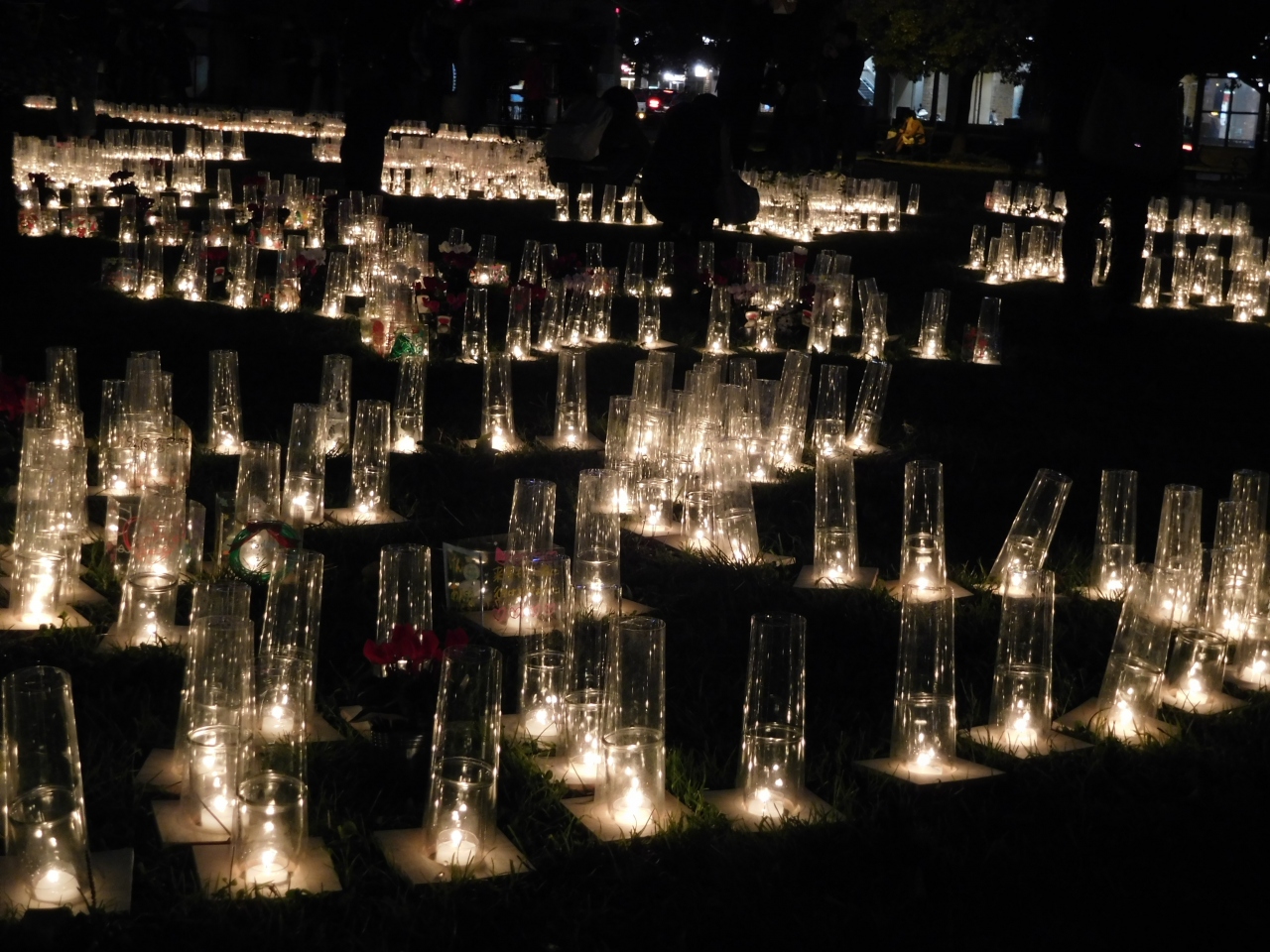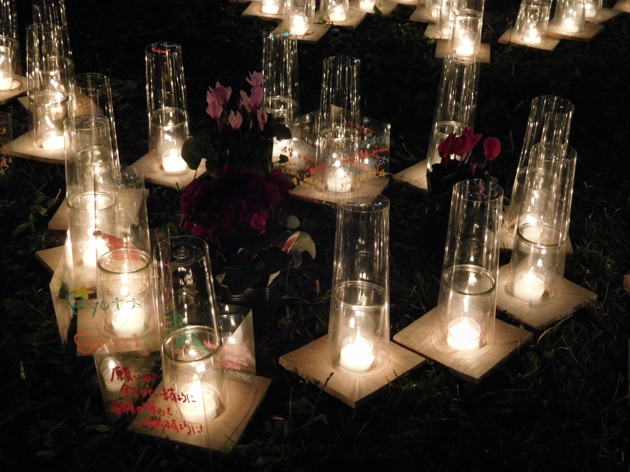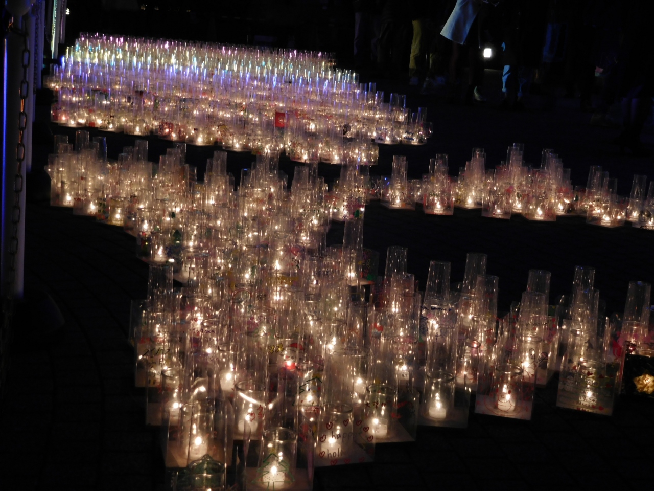 「横濱キャンドルカフェ2015」は、12/23と24の2日間、ナビオス横浜周辺にて行われました。2015年のテーマは、「10th Anniversary 10年の想いをここに」で、5000灯のキャンドルが輝いていて、とても幻想的で綺麗でした。中には、メッセージの入ったキャンドルも並べてあり、これだけの数のキャンドルを灯すのは大変だったろうな、と思いました。