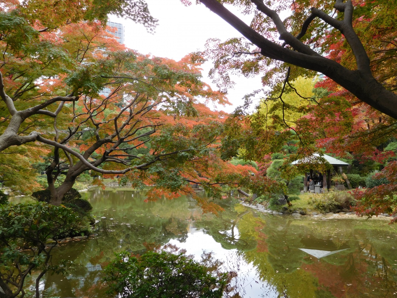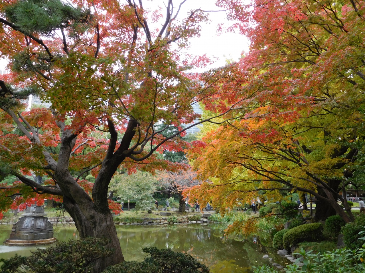 日比谷公園内、大音楽堂の近くにある池です。日比谷公園の園内マップには池の名前が書かれていませんが、「鶴の噴水」と書かれている池が「雲形池」です。池の周囲には、ベンチが置いてあるので、池や噴水を見ながら、小休憩するのにちょうど良い場所です。11月中旬に訪れた時は、池の周りの木々が紅葉していて、すごく綺麗でした。