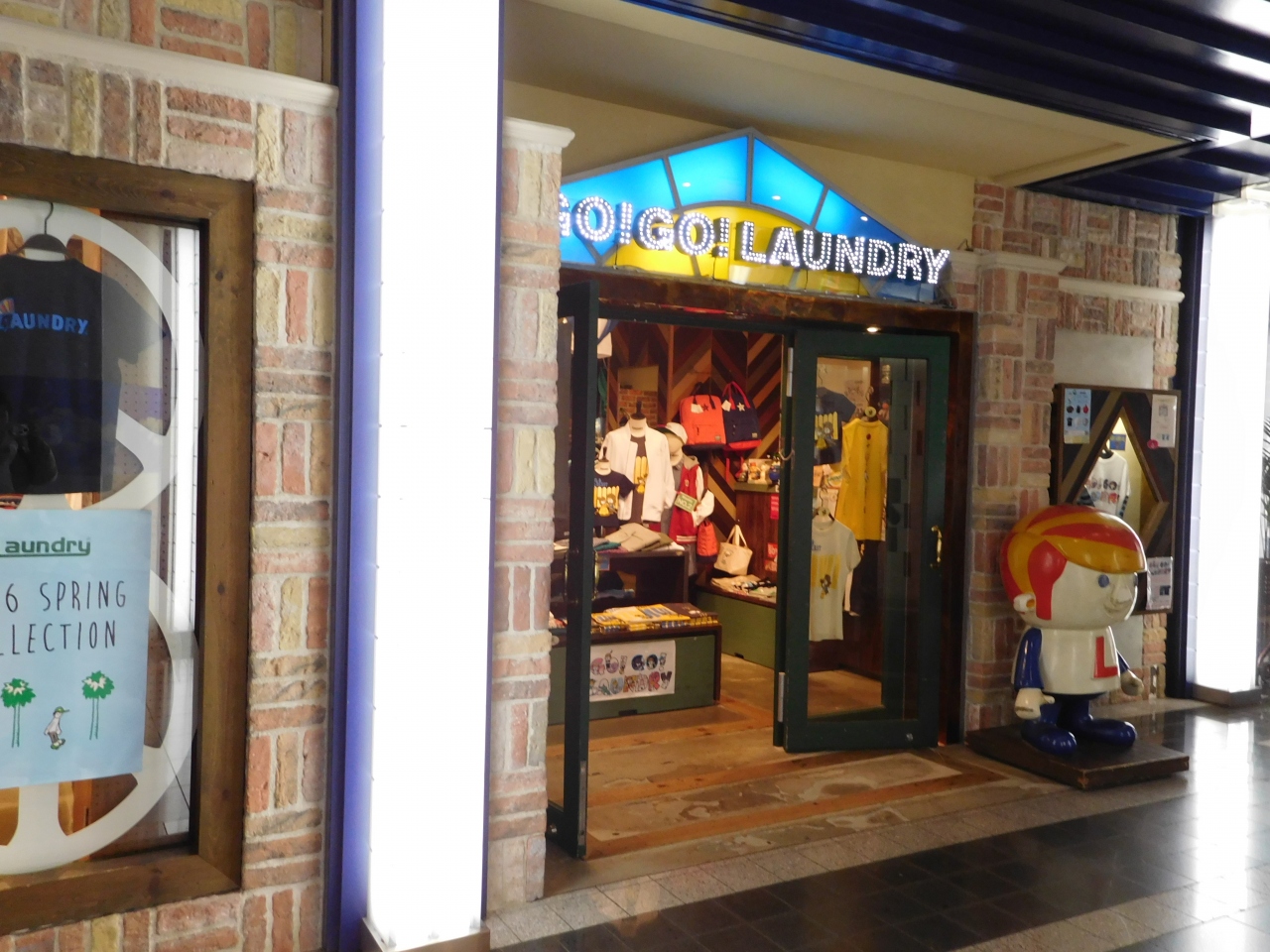 イクスピアリの2Fにあります。可愛らしいデザインのTシャツが沢山並んでいて、いろいろコラボしたTシャツや、イクスピアリ限定デザインもあり、見ているだけでも楽しめるお店でした。また、お店の名前も、「GO!GO!LAUNDRY」とワクワクするようなネーミングになっていました。