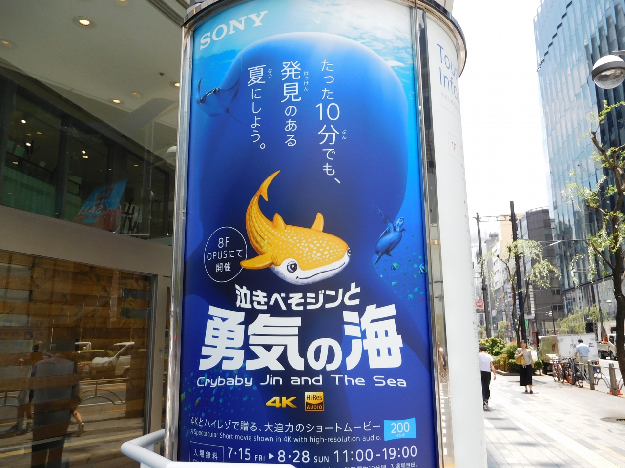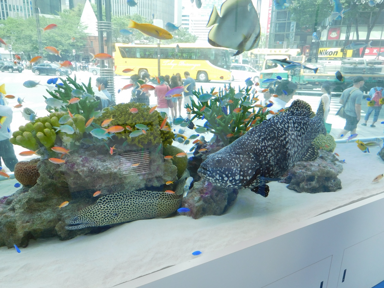 数寄屋橋交差点のすぐ近くにあるソニービルのエントランスで開催されています。2016年は7/15~8/28の開催です。沖縄美ら海水族館からやってきた、色鮮やかなお魚が泳いでいました。水槽の反対側に回ると、魚達が銀座の空を泳いでいるような光景も見られます。2階のショールームでは、水槽の魚達を最新デジカメで撮影体験が出来たり、8階のシアターでは、ショートムービーの上映もありました。