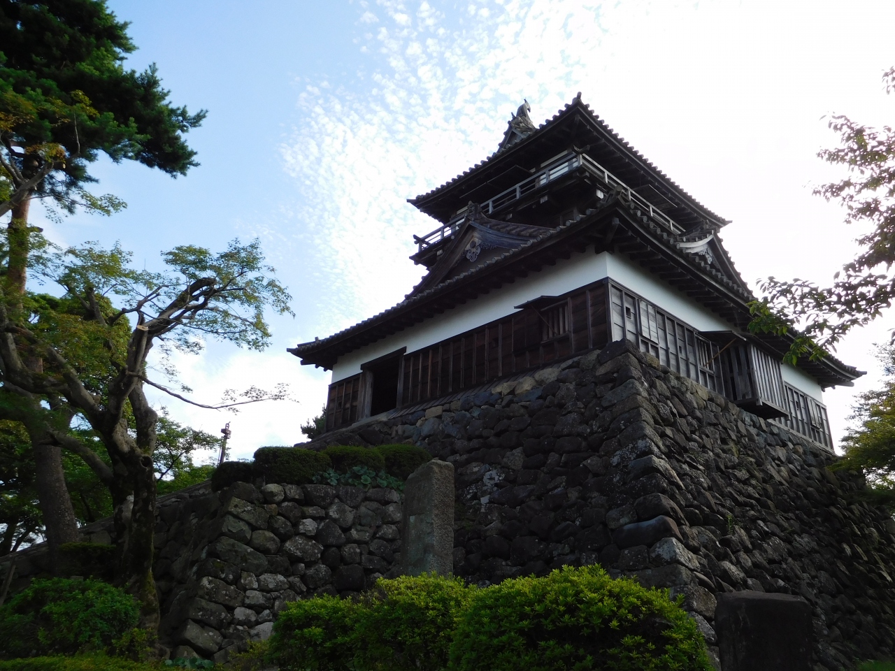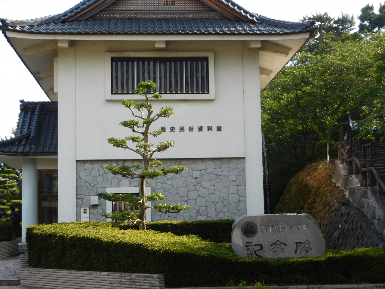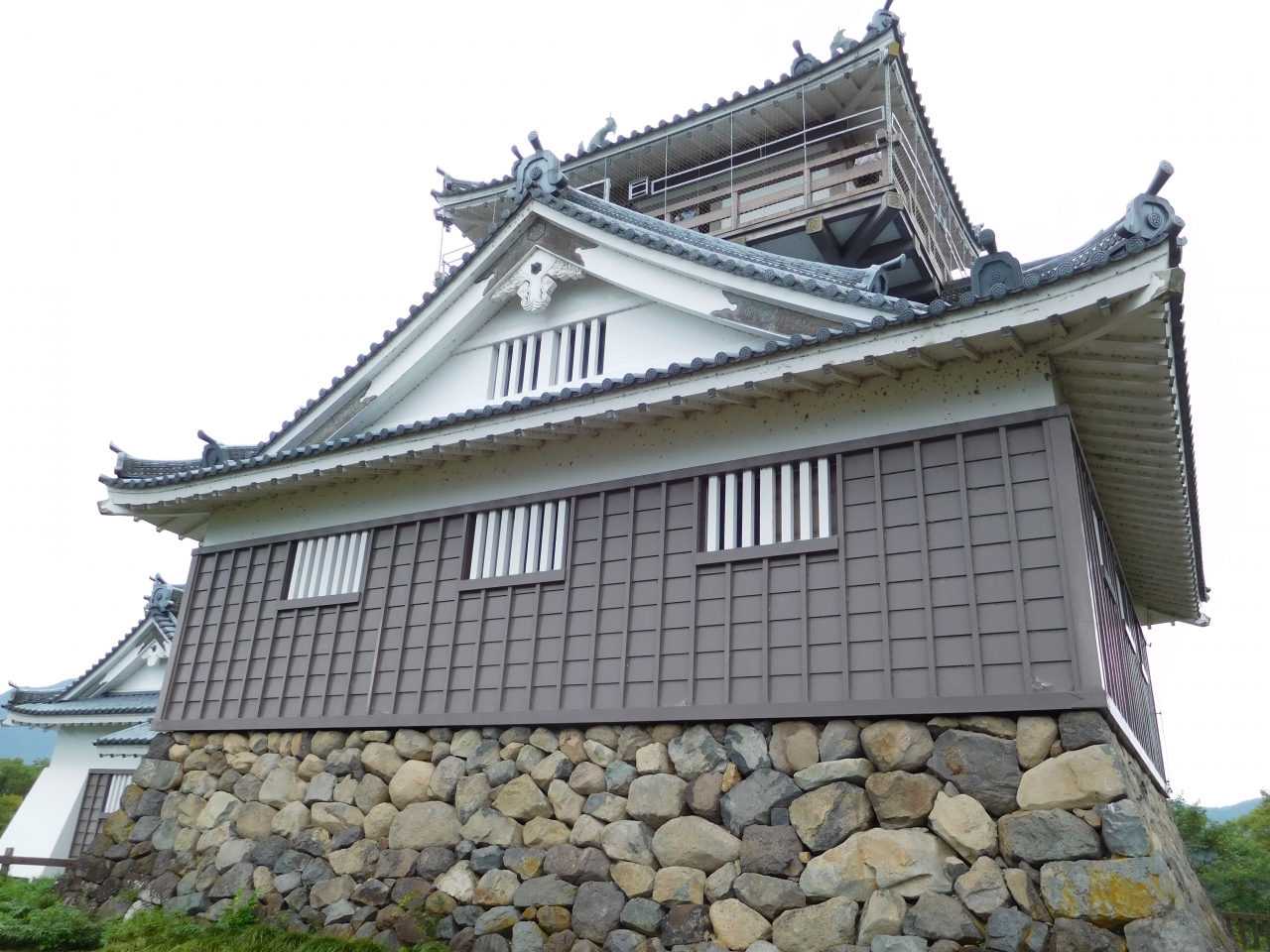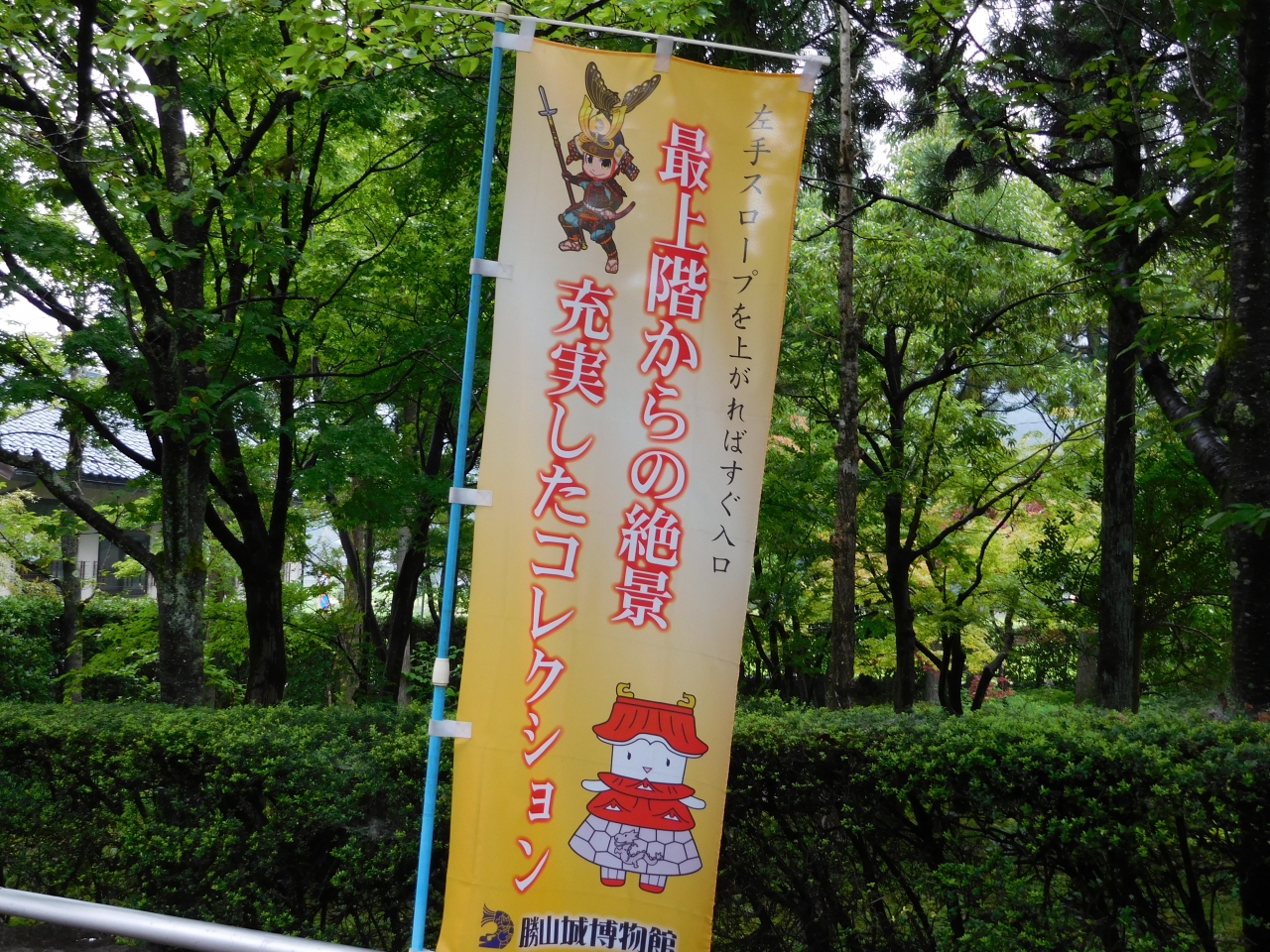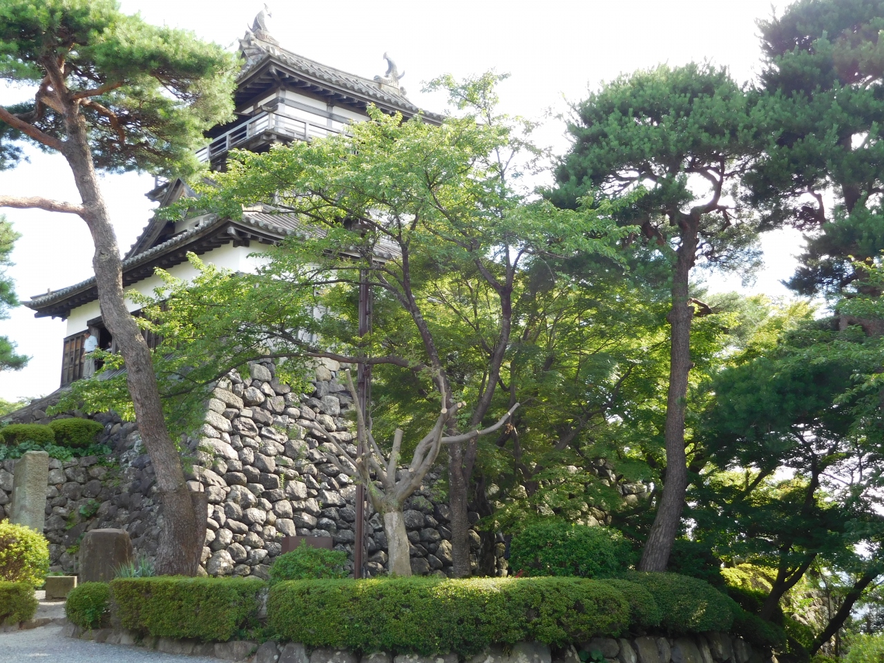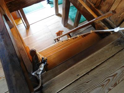 南登り口の坂道から出発し、お城へと向かいました。綺麗に整備された歩きやすい道がしばらく続き、途中から、近道の階段コースがあったりもしました。標高249mの高さにあるお城は、中央に階段が一つだけあるコンパクトな造りで、歴代城主の金森氏・土井氏などの遺品の展示がありました。片道約20分かかり、結構いい運動になりました。歩きやすい靴で行くのがベストです。