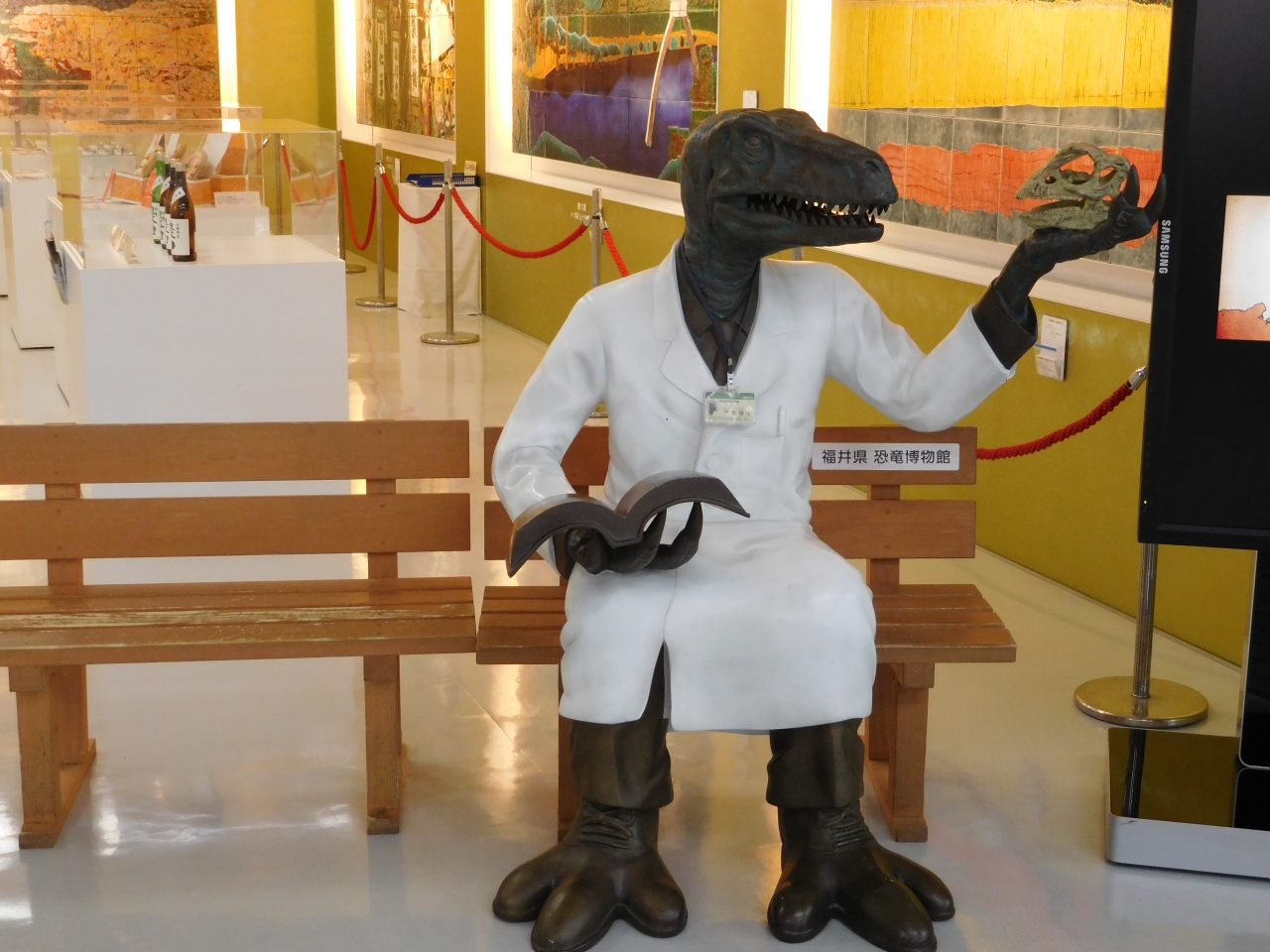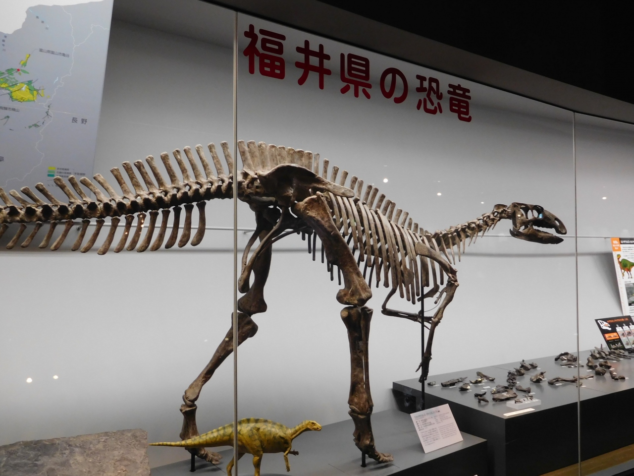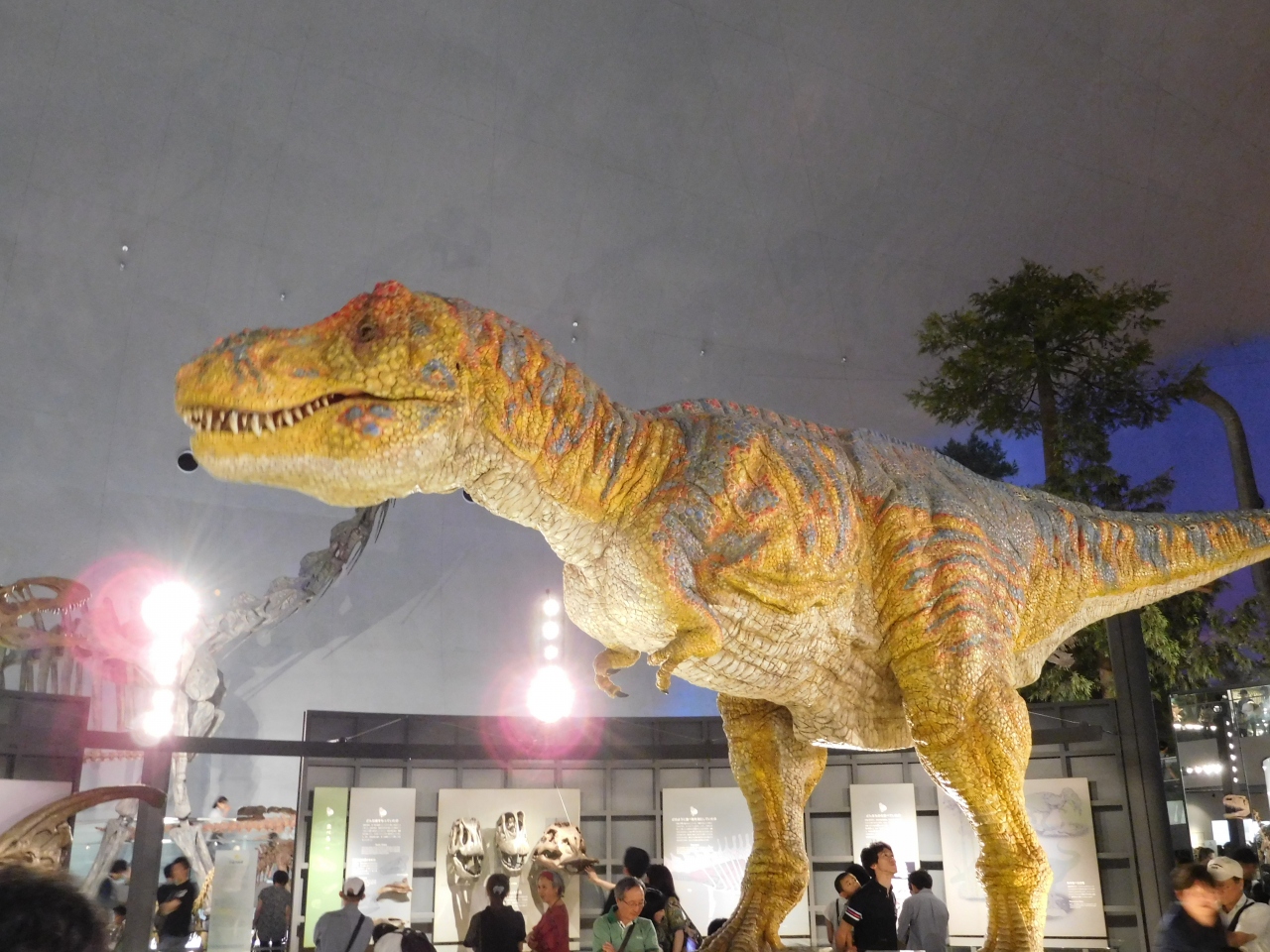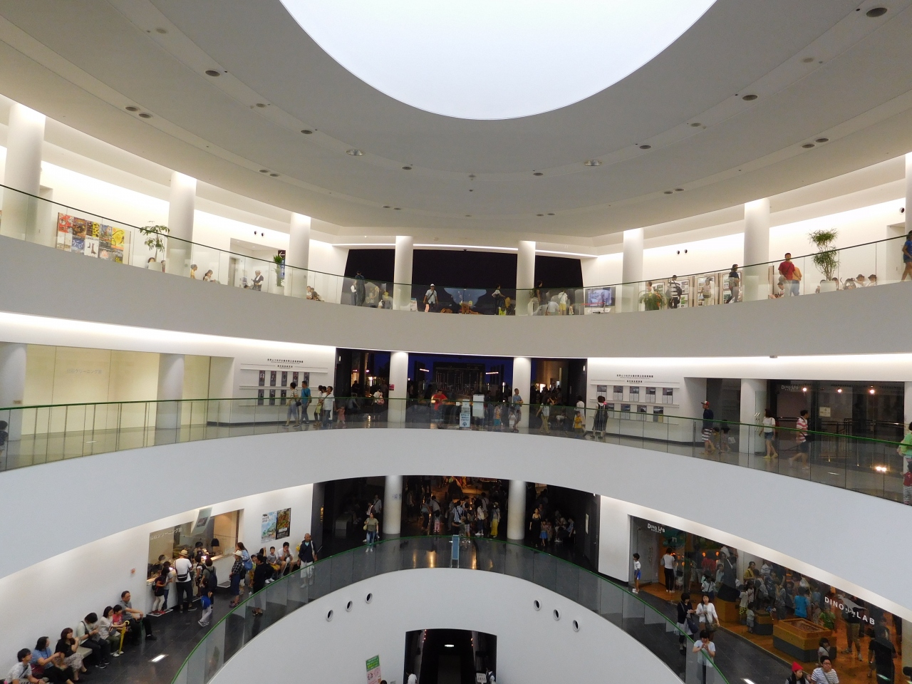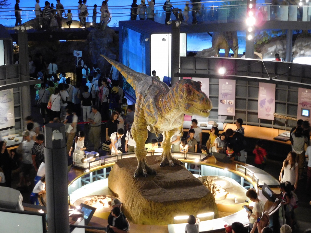 3階の正面入り口から、長いエスカレーターに乗って地下1階まで下りて行き、そこから順に展示を見て行くようになっていました。ドーム型の建物なのですごく広々としていて、常設展だけでもかなり充実した内容で、大人から子供まで楽しめるような展示になっていました。車イス用のルートもあったり、いろいろな角度から恐竜が見れたり、思いがけず楽しかったです。車でないとアクセスが不便な場所ですが、行く価値は十分にあると思います。