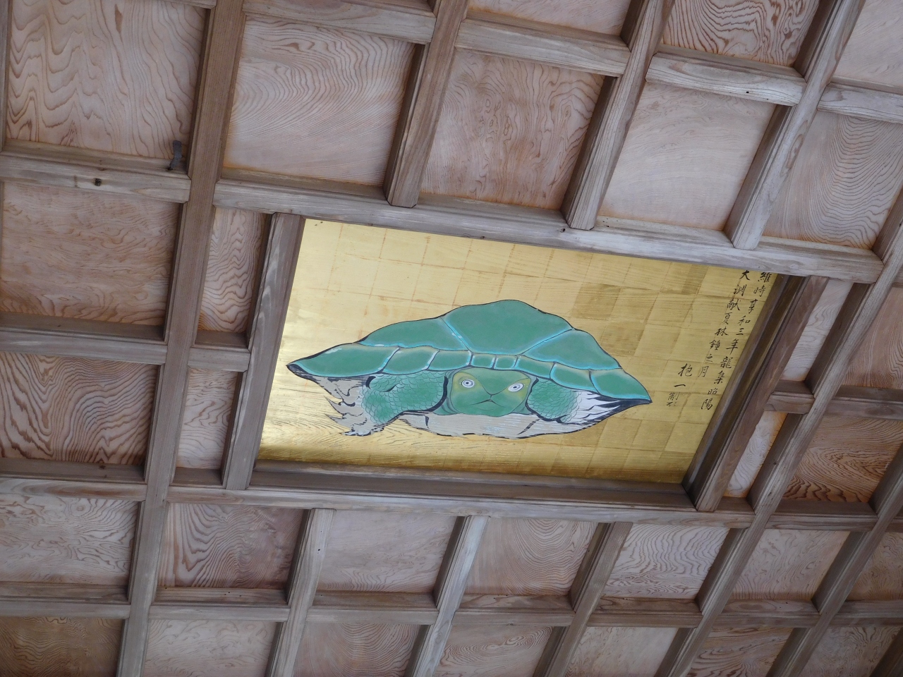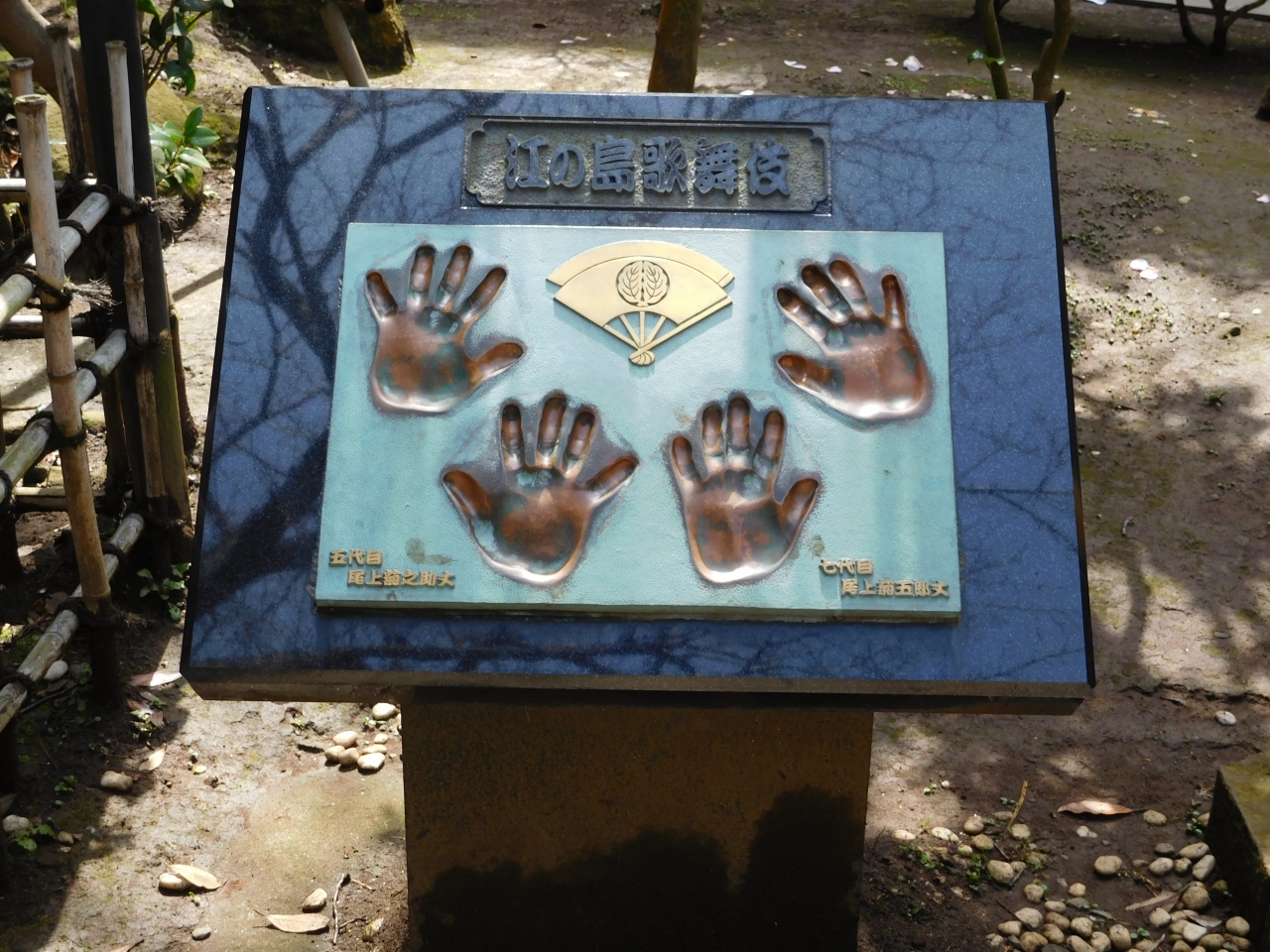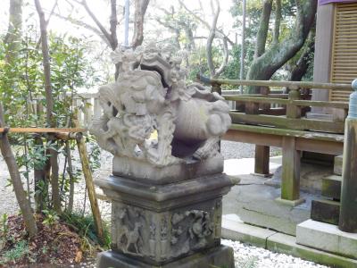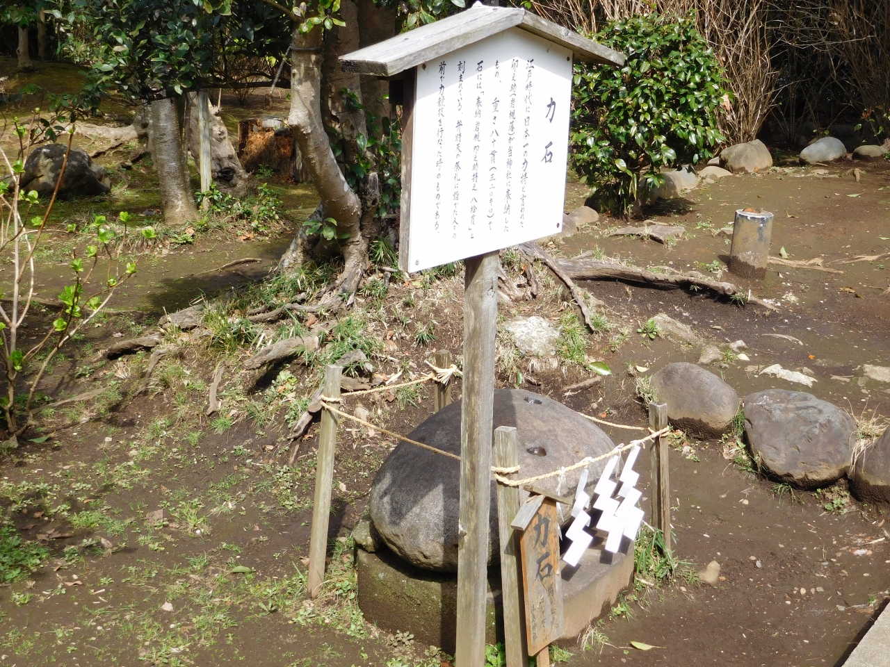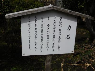江島神社の一番奥にある「奥津宮」にあります。亀石(亀甲石)の案内板があり、割とすぐに場所が分かりました。亀の甲羅の形をした石が、大きなイチョウの木の下に置かれています。鎌倉四名石の一つのようです。すぐ近くには、力石もありました。