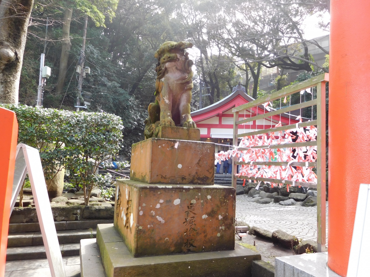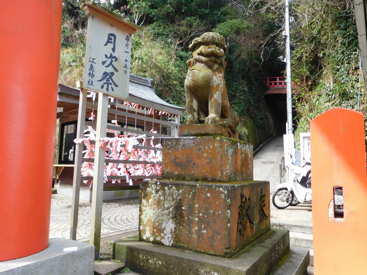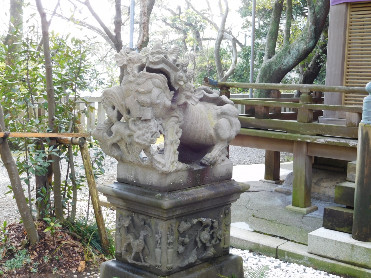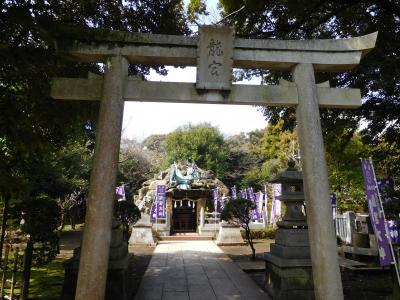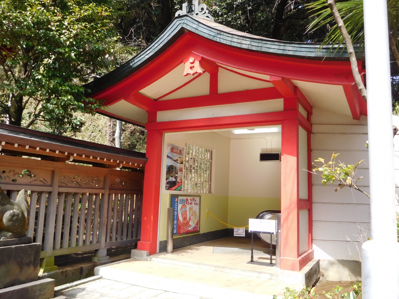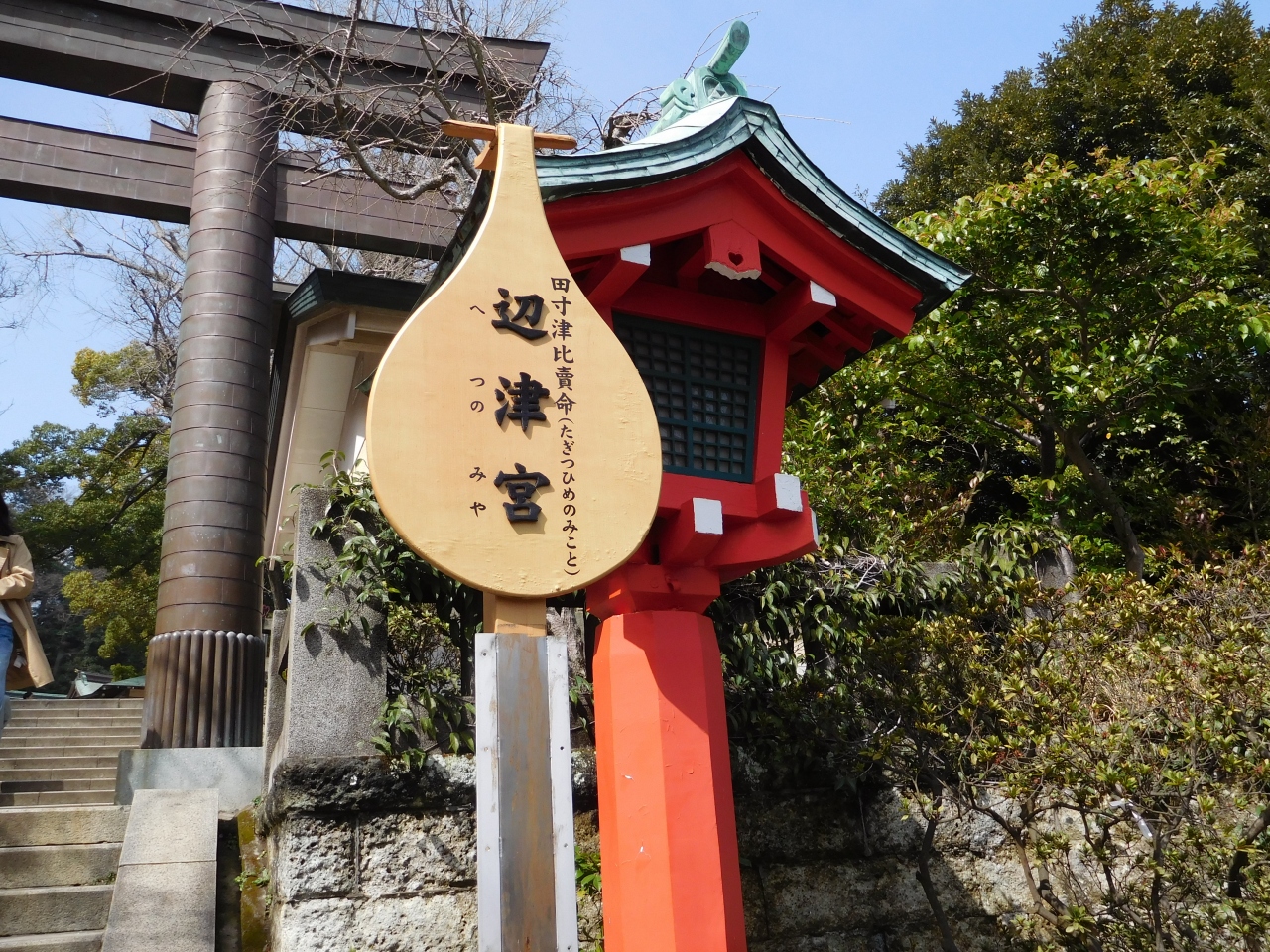 江島神社 辺津宮の境内にある、こじんまりとした小さな神社で、建速須佐之男命(たけはやすさのおのみこと)が祀られています。すぐ右隣には「奉安殿」があり、向かい側には、イチョウの御神木である「むすびの樹」があります。