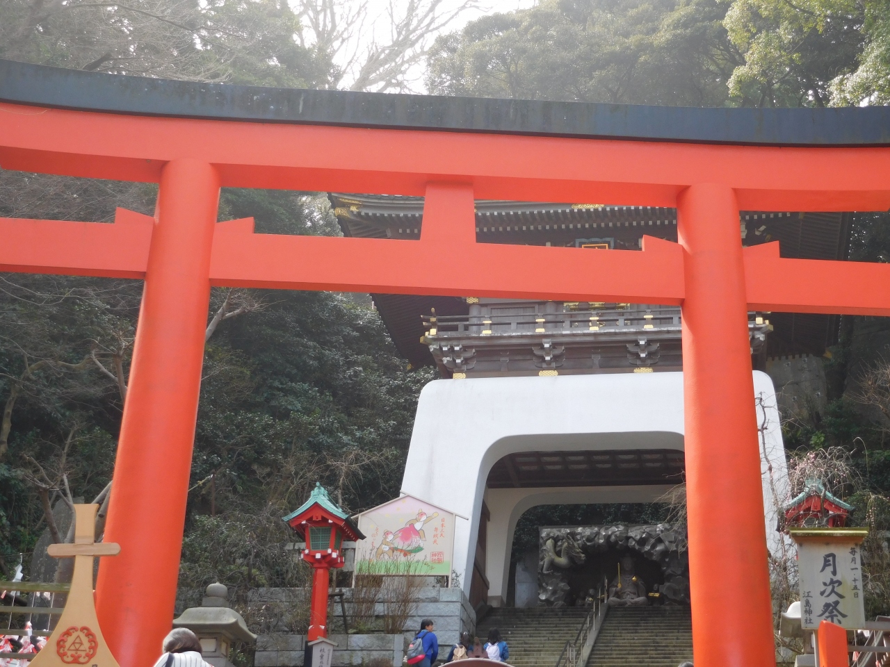 江の島の一番奥側にあり、長い年月の間に波の侵食を受ける事によって出来た自然の洞窟です。第一岩屋(152m)と、第二岩屋(56m)の2カ所あります。第一岩屋は、江島神社発祥の地と言われ、奥へは、ローソクを持って見学しました。一番奥は、富士山の人穴に通じていると伝えられています。第二岩屋の奥には、龍神伝説に基づく大きな龍がいて、太鼓を叩いて願いが叶うか占えるようになっていました。(無事に階段を登って帰れますように、とお祈りをしている人が多かったです。)なかなかここまで足をのばして来るのは大変ですが、こんなスポットがあるのは知らなかったので、来てみて良かったです。