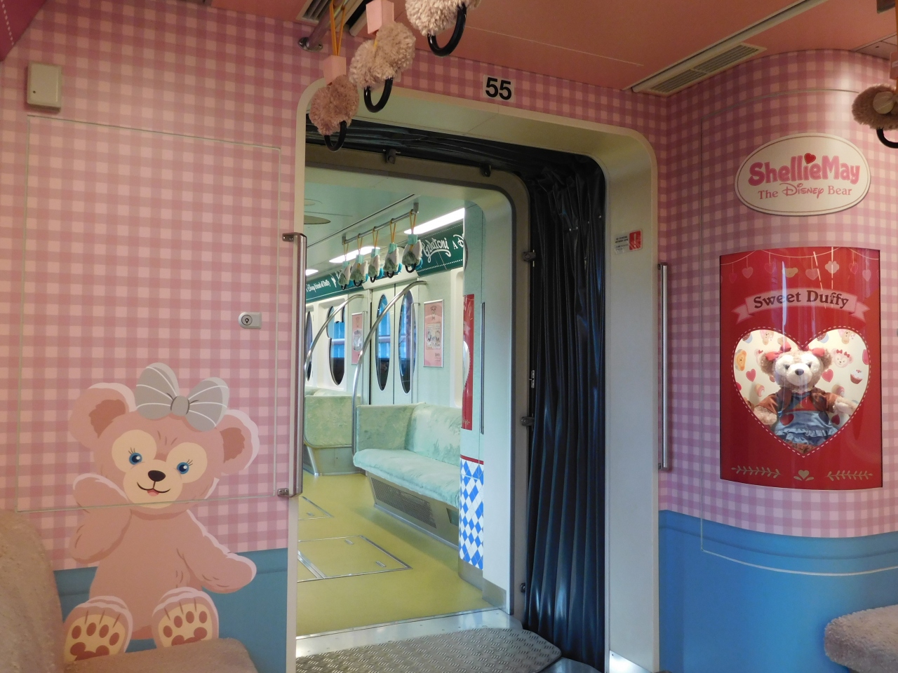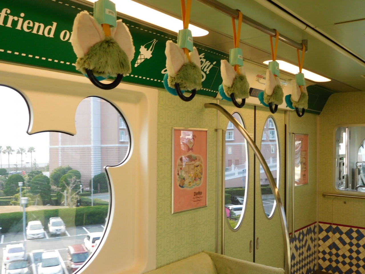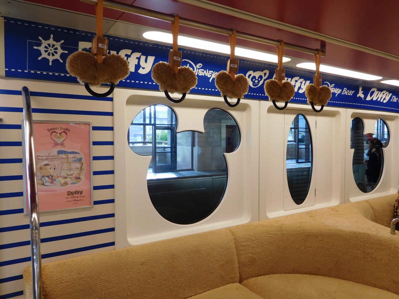 「リゾートゲートウェイ・ステーション」、「東京ディズニーランド・ステーション」、「ベイサイド・ステーション」、「東京ディズニーシー・ステーション」、の4つの駅を結んでいるモノレールです。期間限定で、「ダッフィー&フレンズ・ライナー」が走っていました。車内は、ダッフィー、シェリーメイ、ジェラトーニの3種類のデザインになっていて、とても可愛かったです。