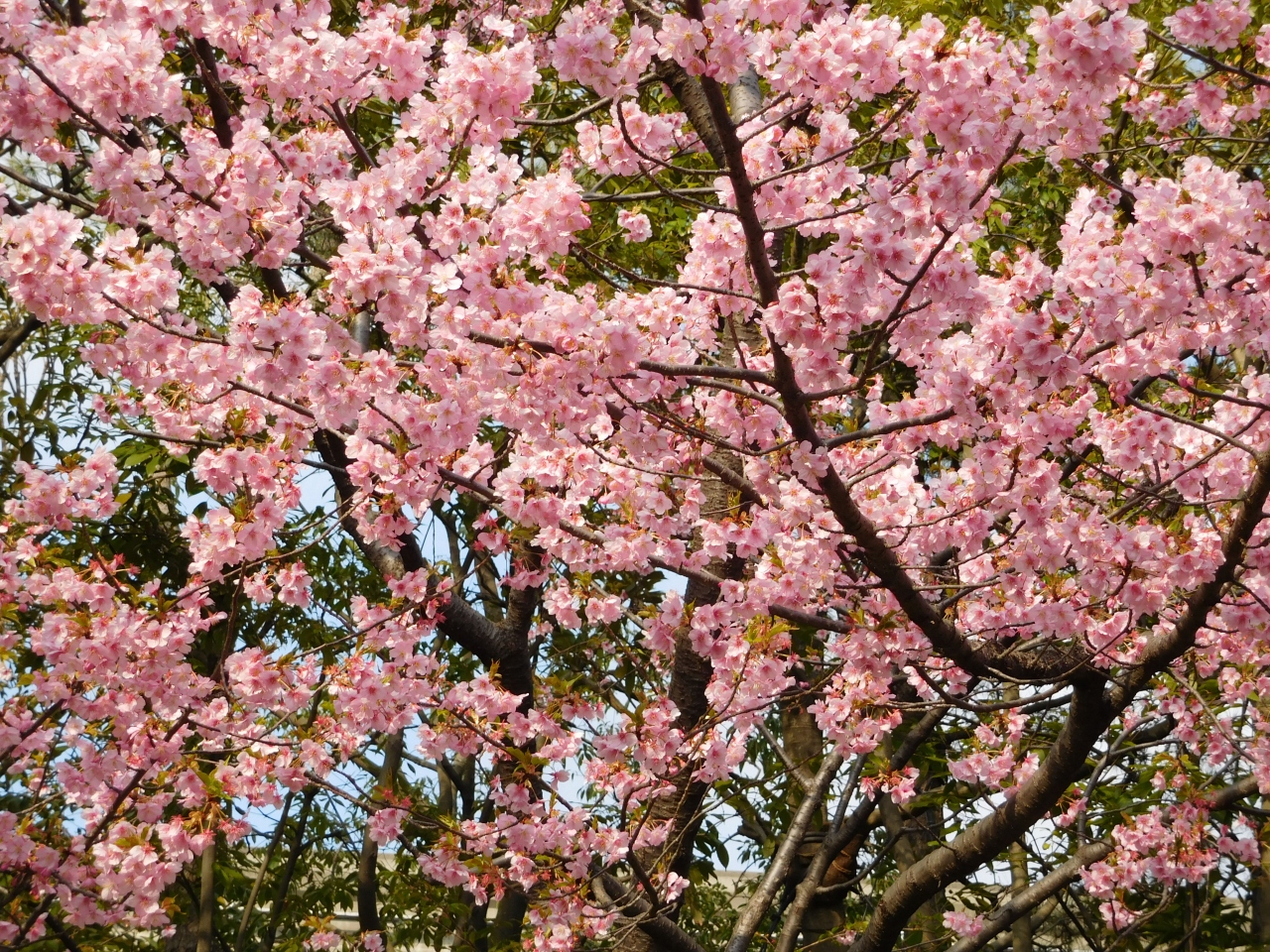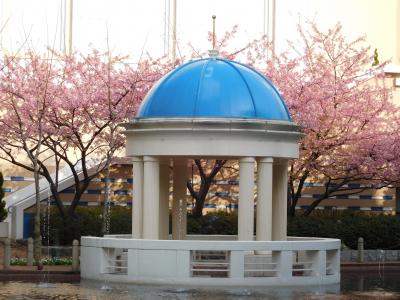 ディズニーとはまた少し違った独特な世界感のある、ショッピングモールです。様々なショップやレストラン、映画館などが入っていて、ここだけでも結構、時間を過ごせる場所です。ガーデンサイトでは、河津桜が綺麗に咲いていました。