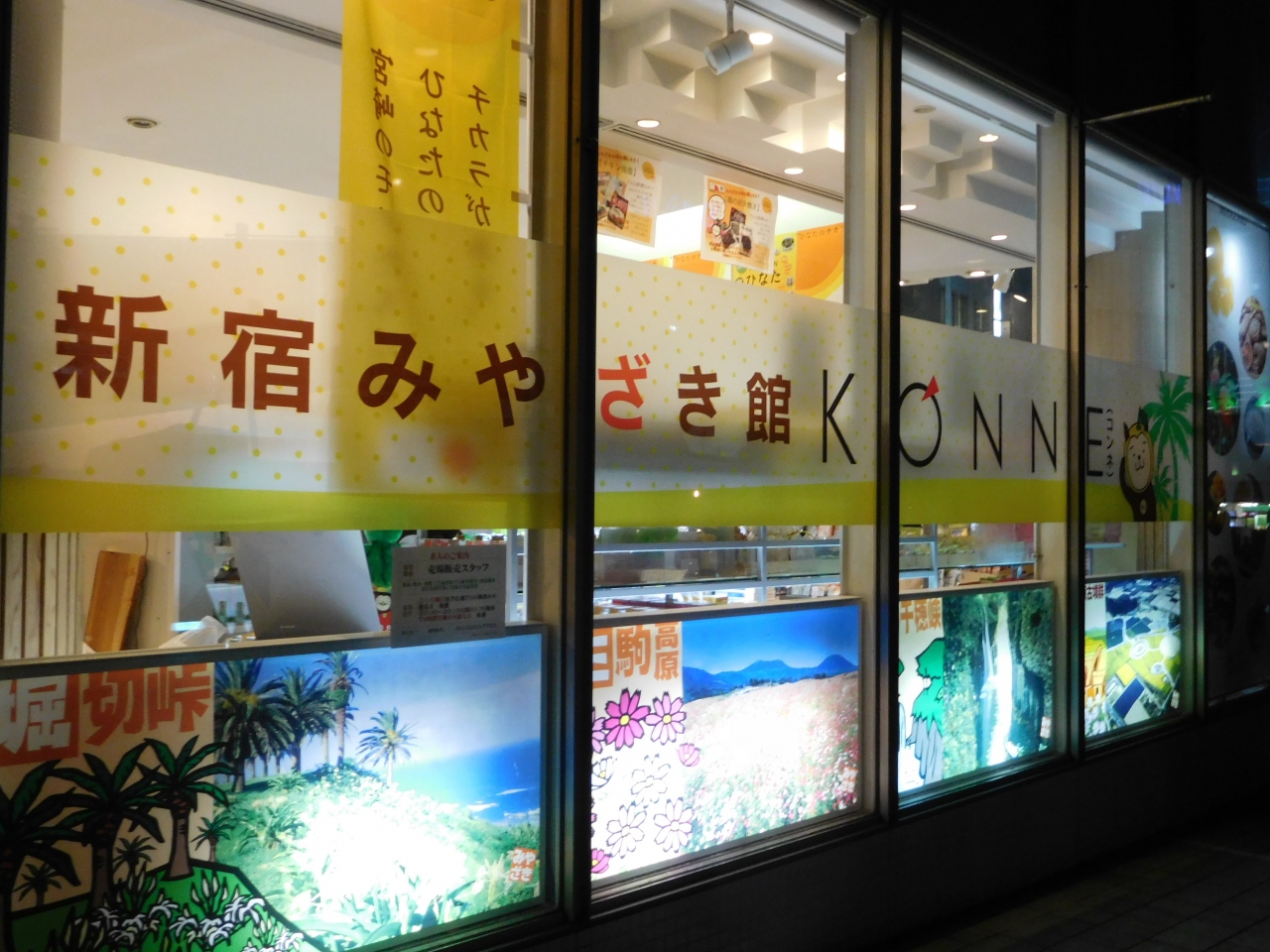 新宿サザンテラス内にある、宮崎県のアンテナショップです。なかなか立ち寄る機会が無かったのですが、イルミネーションを見に来た際に入って見ました。食品、軽食、工芸品、焼酎のコーナーがありました。観光コーナーは18:30まででしたが、販売は20時まで営業していて良かったです。