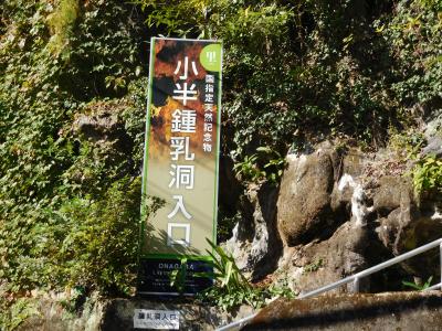 のどかな田園風景の広がる道を進んでいくと、国指定天然記念物の小半鍾乳洞に到着しました。鍾乳洞案内所で、入洞料金を支払うと、ライト付きのヘルメットと懐中電灯の貸出がありました。歩いてすぐの場所に鍾乳洞入口があり、探検するような気分で中に入りました。歩きやすく整備され、照明や案内板の表示も沢山あり、とても幻想的な世界が広がっていました。途中、かがんで通らなければならない個所があり、ヘルメットをかぶっておいて良かったと思う場所もありました。予想以上に良く、本当に穴場的な観光スポットだと思いました。