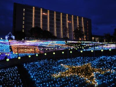 掛川花鳥園とのお得なセット券を購入して、つま恋のサウンドイルミネーションを見に行きました。17時の点灯の時間に合わせて行くと、イルミネーションの配線がめぐらされた広場がパッとカラフルな世界に変わり、とても綺麗な瞬間が見れました。ホテル前のエリアを中心に、ト音記号や星のデザインのイルミネーションが、音楽に連動してショーを繰り広げたり、とても綺麗で幻想的でした。また、ホテルの屋上からも見る事が出来ました。まだ寒くない時期だったので、ゆっくり楽しむ事が出来て良かったです。