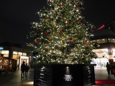 恵比寿ガーデンプレイスのセンター広場に到着すると、大きなクリスマスツリーがお出迎え。赤をメインとしたカラフルな装飾がされていてとても綺麗で、フォトスポットになっていました。そこから、イルミネーションでライトアップされた木々の間に引かれたレッドカーペットを歩いて行くと、世界最大級を誇るバカラシャンデリアがありました。クリスマスツリーとシャンデリアの道は、ゆったりとした坂道になっているので、どちら側からでも綺麗なイルミネーションが楽しめました。