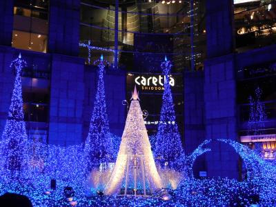 2015年のカレッタイルミネーションのテーマは、「カノン・ダジュール」~青い星の谷~で、青色の光に包まれたイルミネーションの世界が広がっていました。20分に1回、約6分間のイルミネーションショーが行われます。通常のショーの他に、1時間に一度、シンデレラをイメージしたショーもありました。ショーの時間が終わると、すぐに、中央のツリーでの撮影待ちの列が出来ていました。ショーが終わった後、写真撮影をしたりしているとすぐに次のショーの時間になるので、折角なので、2種類のショーを観て楽しんでみた方がいいと思います。これだけのショーを無料で観れるなんて、すごいなと思いました。