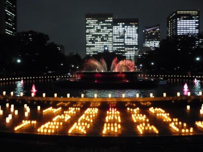 日比谷公園の中心にある噴水で、周囲には広場があります。年間を通して、この噴水付近で様々なイベントが催されています。毎年恒例のイベントとなったキャンドルによるライトアップ「HIBIYA AKARI TERRACE 2015」を見に行ってきました。大噴水を中心に、キャンドルのライトが灯されて、いつもとは違った幻想的な光景が広がっていました。