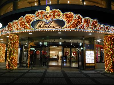 日比谷シャンテの正面エントランス(広場側)に、クリスマスイルミネーションの装飾がされていました。2015年は、ティアラをモチーフにしたイルミネーションのようです。モコモコとしたカラフルなバラの装飾に、イルミネーションが施されていました。近くには銀座のイルミネーションが広がっているので、ここだけ特別というよりは、オリジナルのイルミネーションが見れる場所だと思いました。