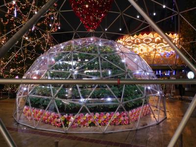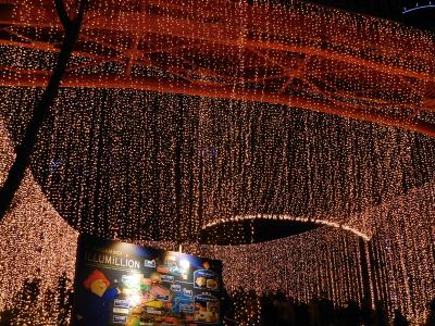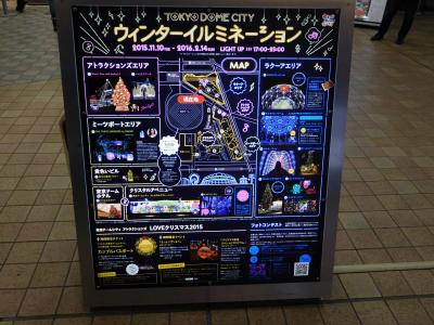 東京ドームシティの2015年のイルミネーションは、「音と光のファンタジー」がテーマです。水道橋から東京ドーム前を通って、ラクーアエリアまで、様々なイルミネーションがキラキラ輝いていました。イベントの無い平日の夜に訪れたので、空いていて、ゆっくりとイルミネーションを楽しむ事が出来ました。全長約140mの光の回廊「ミルキーウェイ」は、すごく遠近感のあるトンネルで、まるで夢の世界を歩いているようでした。(これは写真を撮るよりも実際に歩いて見るべきと思いました!)高さ12mのヒマラヤ杉ツリーも立派でした。噴水ショーはクリスマスバージョンの選曲もあり、ヒーターの近くで鑑賞したりしました。入場料が要らないので、これだけ見応えのあるイルミネーションを無料で見れるのはかなり満足度が高いと思いました。
