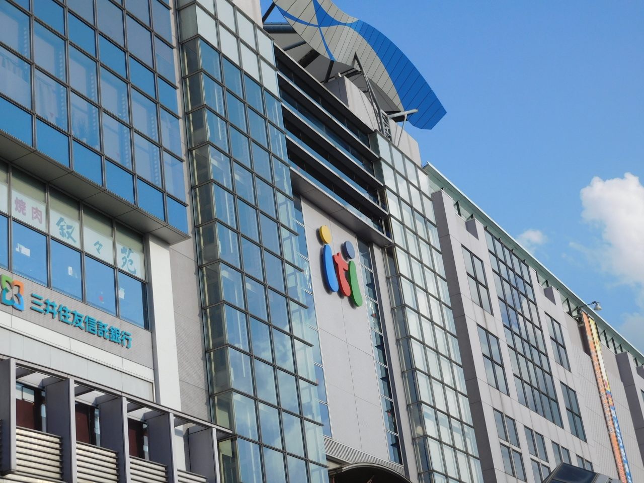 2013年10月にオープンした比較的新しい商業施設で、建物の前には芝生広場が広がっています。おしゃれなデザインの建物ですが、中のテナントが随分撤退してしまっているので、ガランとしていてずいぶん寂しい印象になっていました。