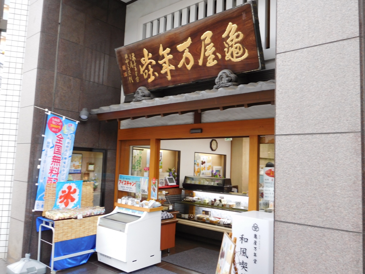 「ナボナ」で有名な、亀屋万年堂です。総本店は、ひかり街方面に歩いて行った先にありますが、自由が丘駅前店は、バスロータリーを左側に歩いて行った先の、大井町線の踏切手前にあります。こじんまりとした小さめの店舗です。箱詰めになった贈答用も揃っていますが、ナボナなどのお菓子がバラ売りでも買えるようになっています。ちょっと買いたい時に気軽に立ち寄れる雰囲気のお店です。