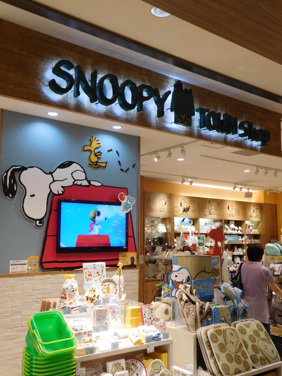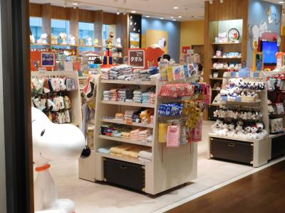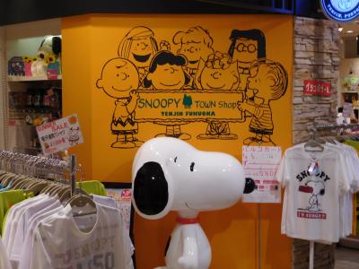 福岡パルコ本館8階の、天神キャラパーク内に、スヌーピータウンショップが入っています。店頭にはスヌーピーがお出迎えしていました。店内は割とゆったりとしたレイアウトで商品が並べてあり、商品もなかなか充実していました。また、福岡限定の商品(どんたくや、明太子などのデザイン)もありました。
