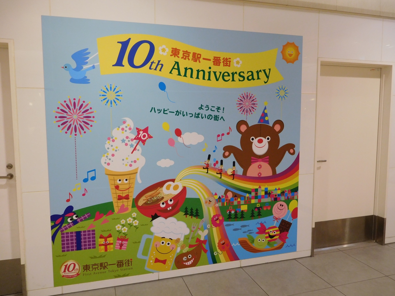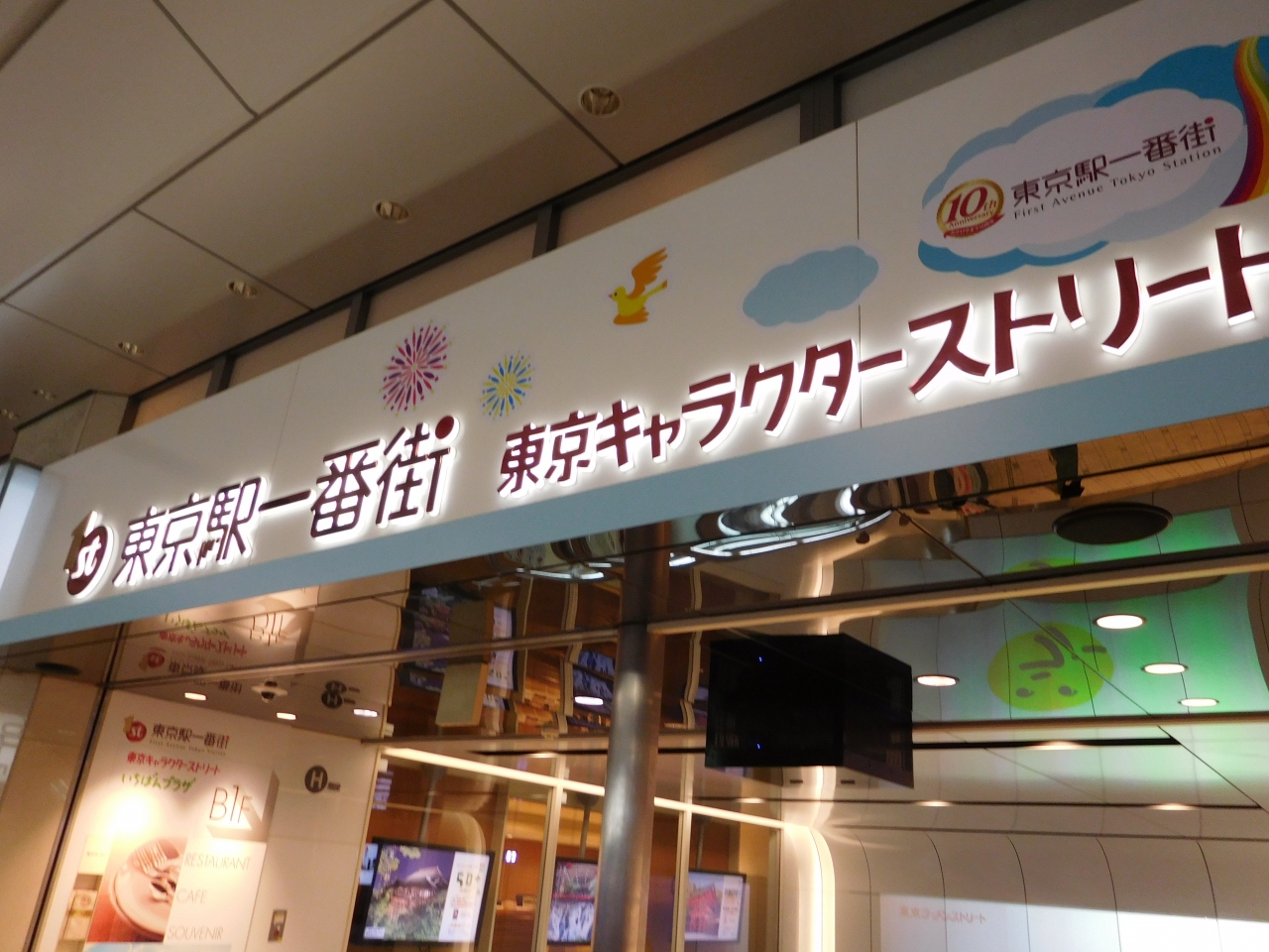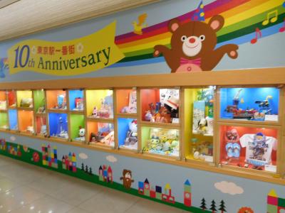 東京駅八重洲口に直結しています。10周年のディスプレイが沢山あり、盛り上がっていました。地下一階は、東京キャラクターストリート、東京おかしランド、東京ラーメンストリートがあり、1階には東京のお土産品が沢山並んでいます。あまりにも沢山のお店があるので、見ているだけでもあっという間に時間が過ぎてしまいます。