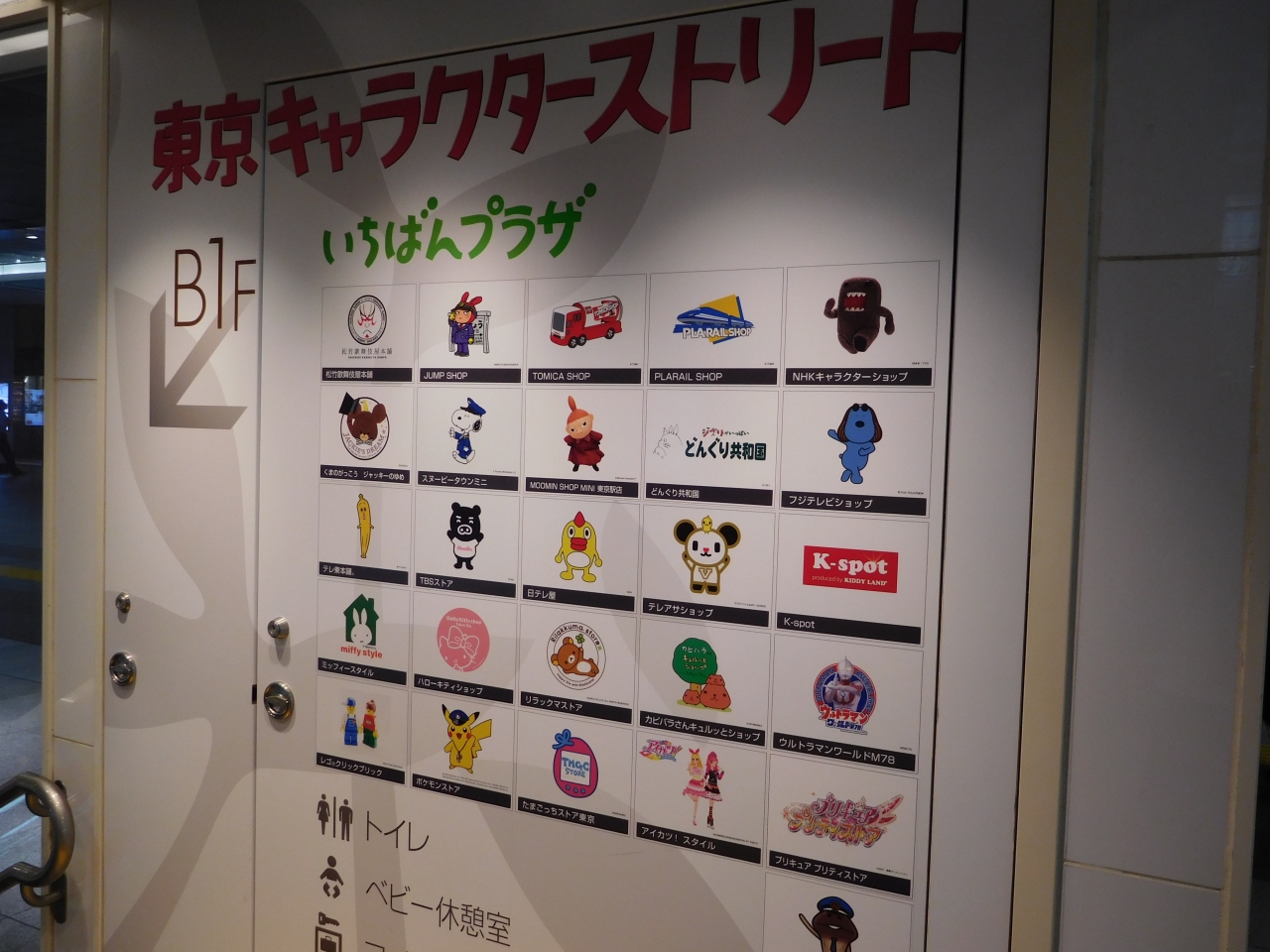 東京駅八重洲口の東京駅一番街の地下1階にあります。様々なキャラクターショップが並んでいて、ウィンドウショッピングをしていると、ついつい掘り出し物を見つけてしまいます。定番の人気キャラクターから、テレビ番組のグッズまで揃っていました。また、ディスプレイボックスには、各店舗の一押しグッズなどが飾られていて、ここも楽しめました。