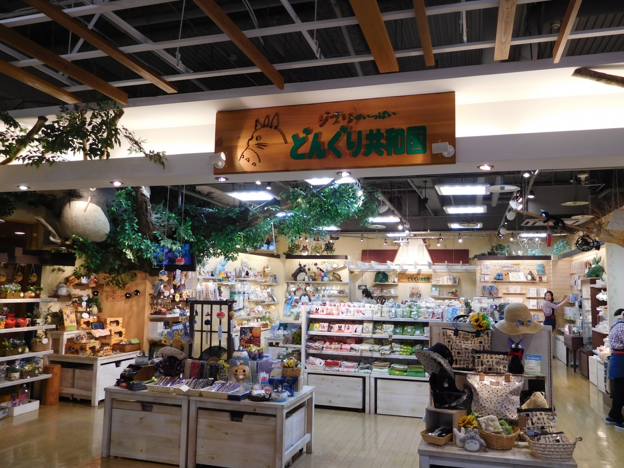 キャナルシティ博多 サウスビル地下1階にあります。店内の天井を見上げると、まるでトトロの森に迷い込んでしまったかのように大きなトトロがいました。店内には、ジブリのキャラクター商品が沢山並んでいました。また、店頭には季節商品もいろいろ置いてありました。