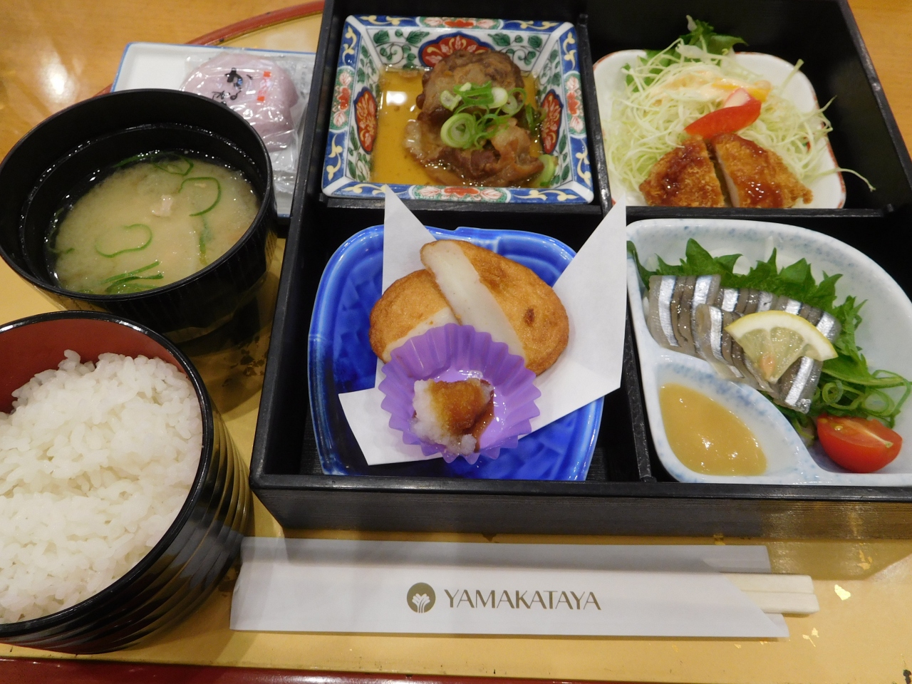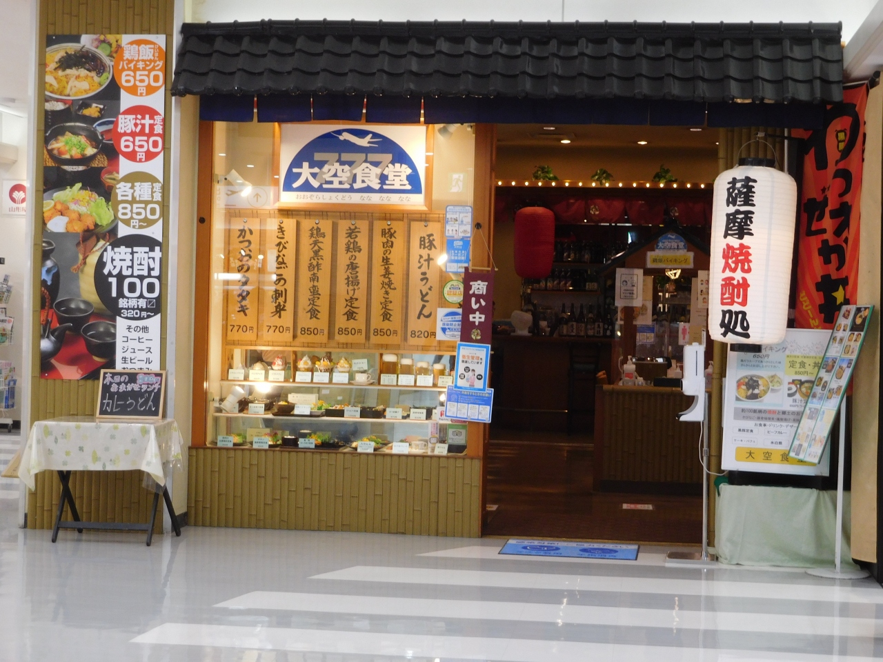 鹿児島空港の2階にあるファミリーレストランです。店内はゆったりとしたテーブル席が多く、メニューも鹿児島の郷土料理から黒豚トンカツなど、豊富に揃っていました。「さつま定食」は、鹿児島の名物が少しずつ入ったメニューになっていたので、こちらを注文しました。また、折角なので、「白熊」も注文して頂きました。店員さんのサービスも良く、鹿児島の名物「白熊」も最後に空港で食べる事が出来て、とても良かったです。