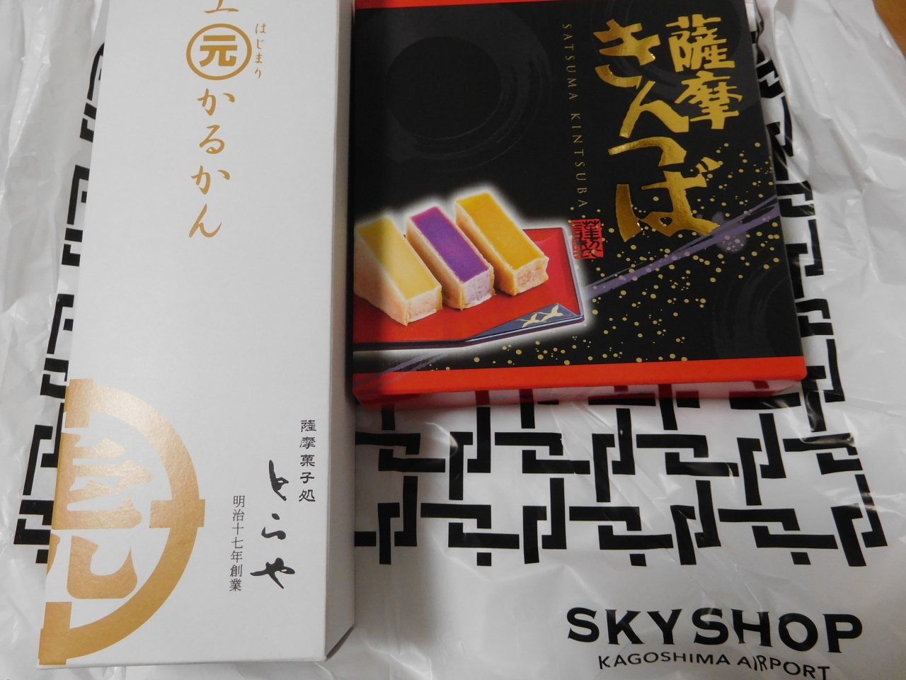 鹿児島空港 国内線ターミナル2階にある「スカイショップ」です。いろいろな種類の「かるかん」が並んでいて、どれにしようかと迷っていたら、店員さんが丁寧にアドバイスして下さいました。鹿児島のお土産品が種類豊富に並んでいるので、買い物しやすくて良かったです。