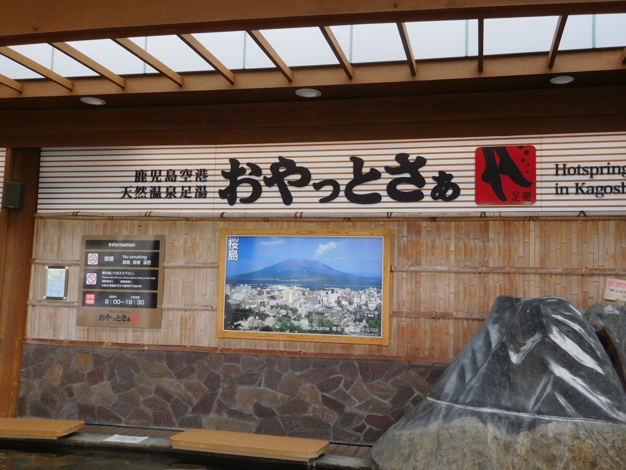 鹿児島空港 到着ロビーの外(中央付近)にある、「鹿児島空港天然温泉足湯」です。足湯は無料で利用出来、総合案内所や足湯のすぐ近くに、オリジナルタオルの販売があるので、飛行機の待ち時間などを利用して気軽に利用できるようになっていました。以前は、海外からの観光客が多く利用していましたが、今の時期は、数える程しか利用者がいなかったので、割と利用しやすかったです。