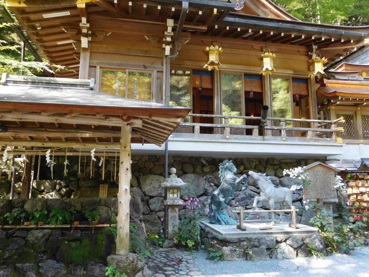 鞍馬山の仁王門から鞍馬寺へと向かう参道の途中にある、歴史の感じられる神社です。豊臣秀頼が再建したと言われる拝殿は国の重要文化財に指定され、境内には樹齢約800年のご神木もあり、大自然の中の神聖なパワーが集まったような感じがしました。