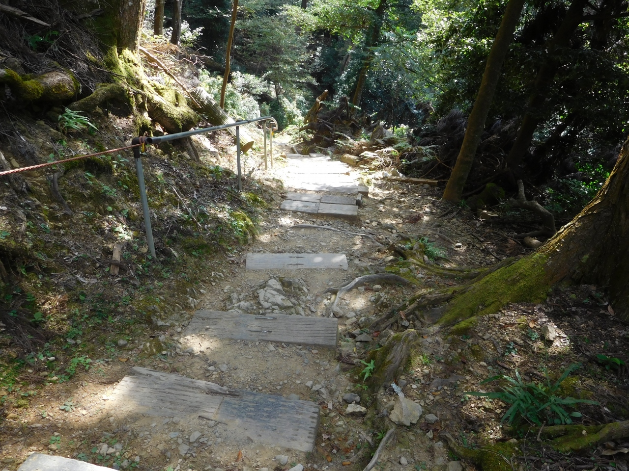 天狗や牛若丸の伝説で有名な「鞍馬寺」のある、標高570メートルの山です。鞍馬の「仁王門」で愛山費を支払い入山し、由岐神社、鞍馬寺を参拝して、貴船側へとハイキングコースを歩いて行きました。かなり起伏のある山道が続き、大自然のパワーを感じながら歩いて行きました。こんなにも結構大変な坂道や階段が続くとは思わなかったので、大変でしたが、かなりいい運動になりました。