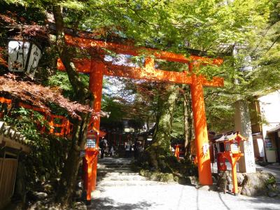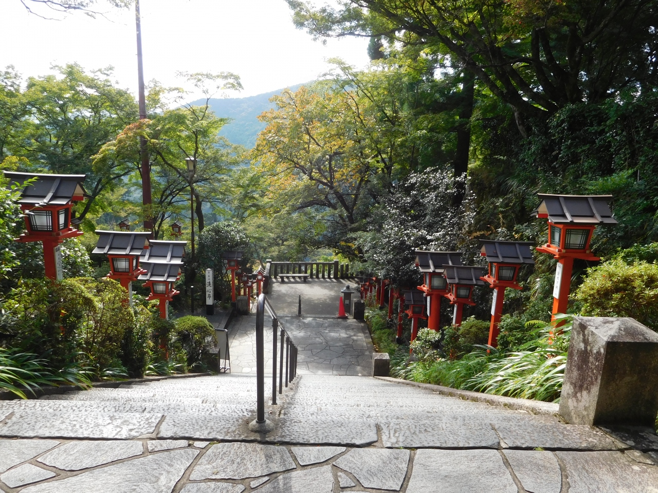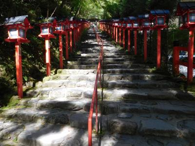 清流「貴船川」沿いにある「貴船神社」は、水の神様を祀る神社で、縁結びの神様としても有名です。総本宮へと向かう参道石段の両側には、朱塗りの灯籠がずっと続いていて、とても見応えがありました。豊かな自然に囲まれた場所にあるので、とても歴史とパワーの感じられる神社でした。