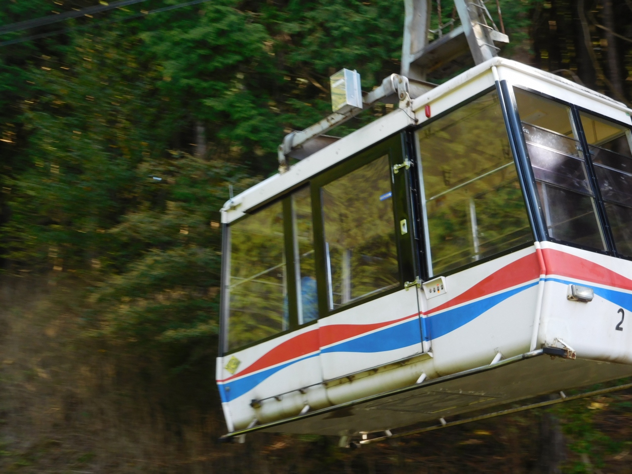 比叡山延暦寺へと向かう際、「叡山ケーブル」と「叡山ロープウェイ」を利用しました。ケーブルは標高差が561mあり、すごい傾斜の斜面を一気に登って行くので、座席に座る際も平衡感覚が分からなくなるような感じがしました。途中で、コンパクトなサイズのロープウェイに乗り換えて、更に山の上へと向かいました。市街地が遥か下の方に見えるような場所まで一気に来れてしまったので、ずいぶん遠くまで来たな~という印象がありました。