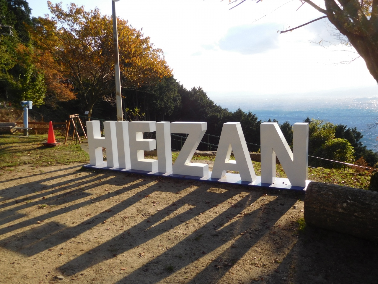 「叡山ケーブル」のケーブル比叡駅のすぐ近くに「パノラマ広場」があり、京都市街が見割らせる絶好の場所に白色のロゴで「HIEIZAN」と書かれたフォトスポットがありました。帰りのケーブル電車の待ち時間の間、休憩も兼ねて景色を眺める事が出来ました。また、ちょうど夕陽が差し込んできて、いい感じの影が出来ていました。今日一日を振り返りながら、電車を待つ事が出来て良かったです。