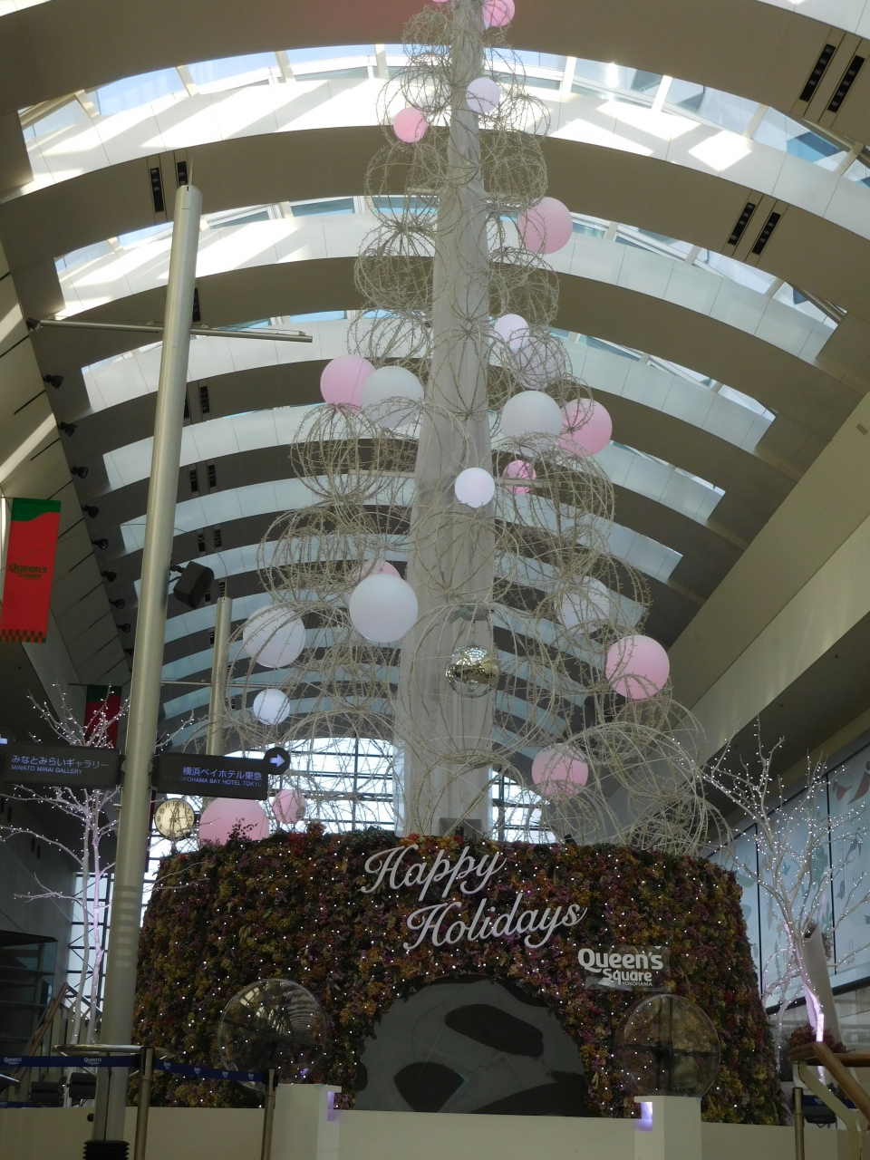 みなとみらい線「みなとみらい駅」からすぐ近くの大型複合施設「クイーンズスクエア横浜」の広場に、クリスマスの時期に設置されるシンボルツリーがとても綺麗です。毎年違ったテーマのツリーが設置されるので、いつも楽しみにしています。今回は昼間に訪れたので、イルミネーションの点灯はしていませんでしたが、吹き抜けの場所に設置されているので、とても迫力がありました。