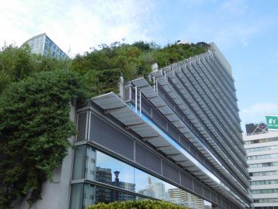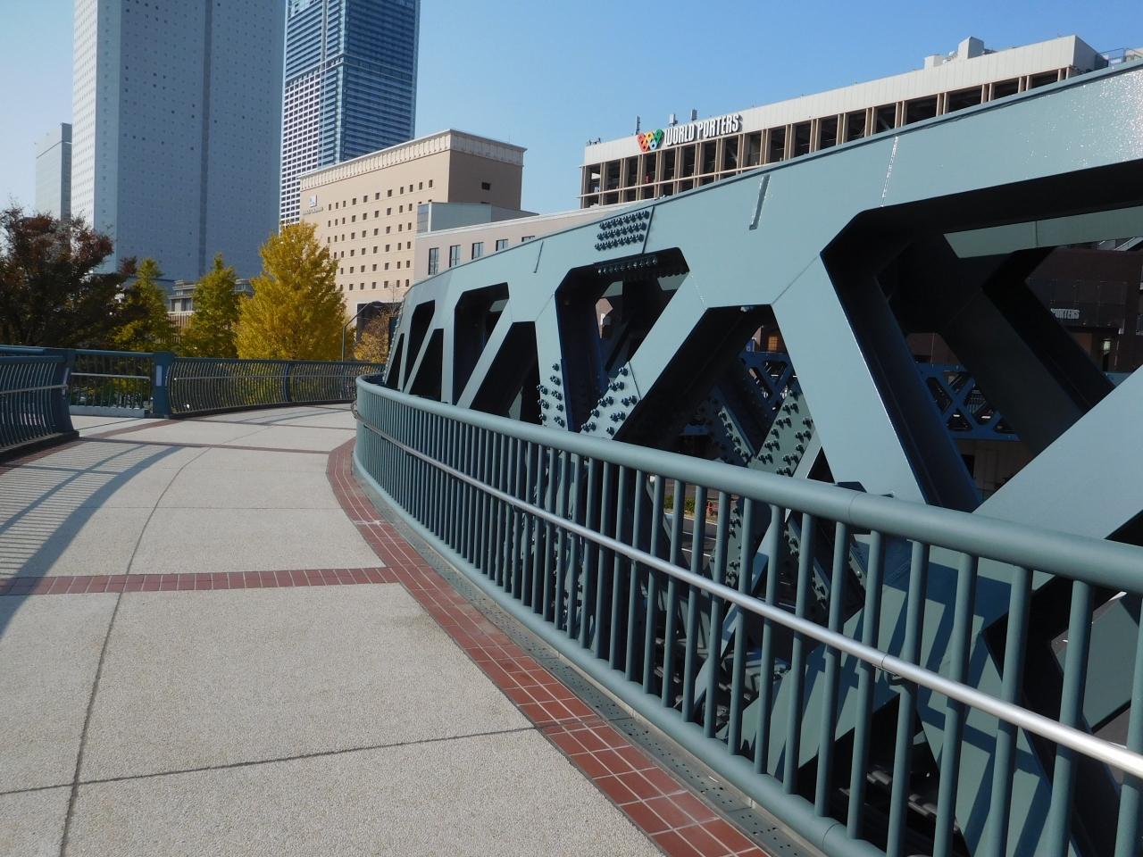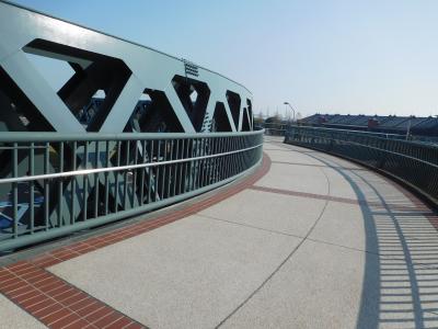 みなとみらいの新港地区、国際大通りと万国橋通りの交差点にある、ドーナッツ型の歩道橋です。交通量が多い場所なので、信号を気にせずに移動する事が出来るので、とても便利です。前回訪れた時は塗装工事中でしたが、工事が終わってとても綺麗になっていました。