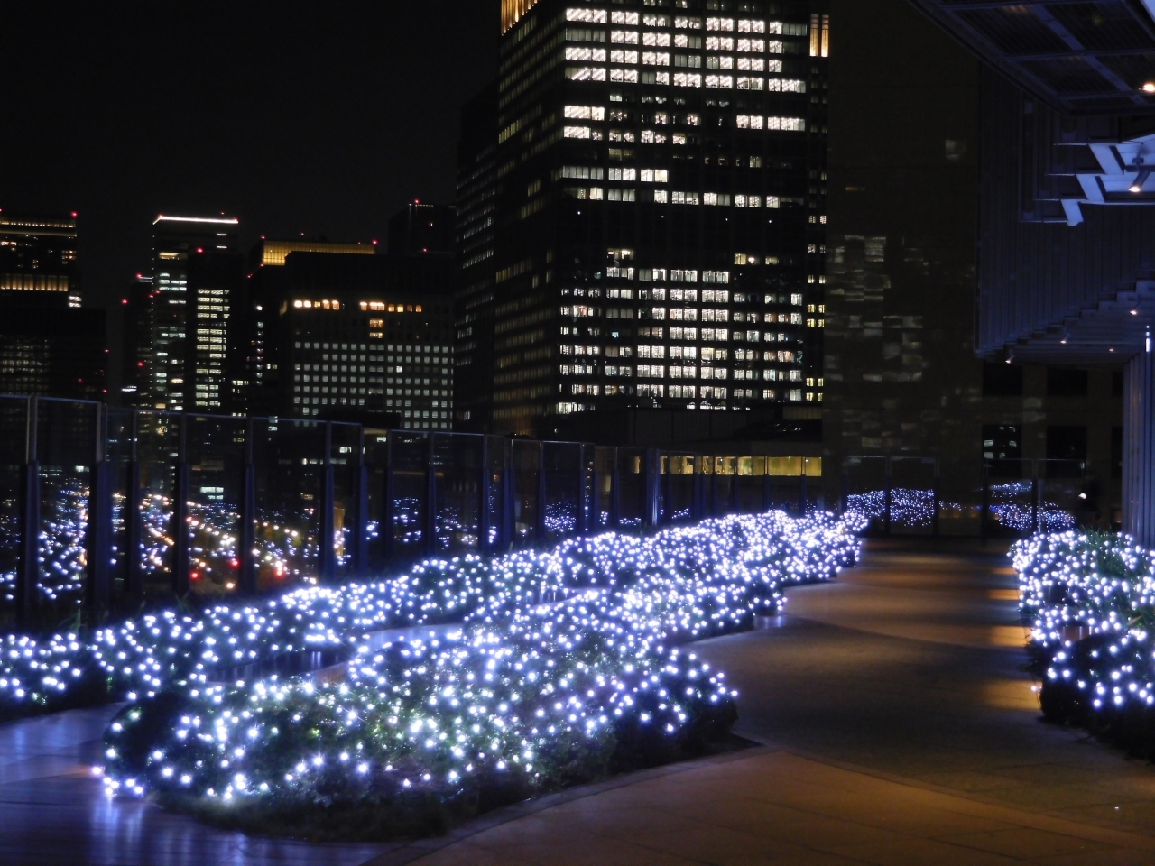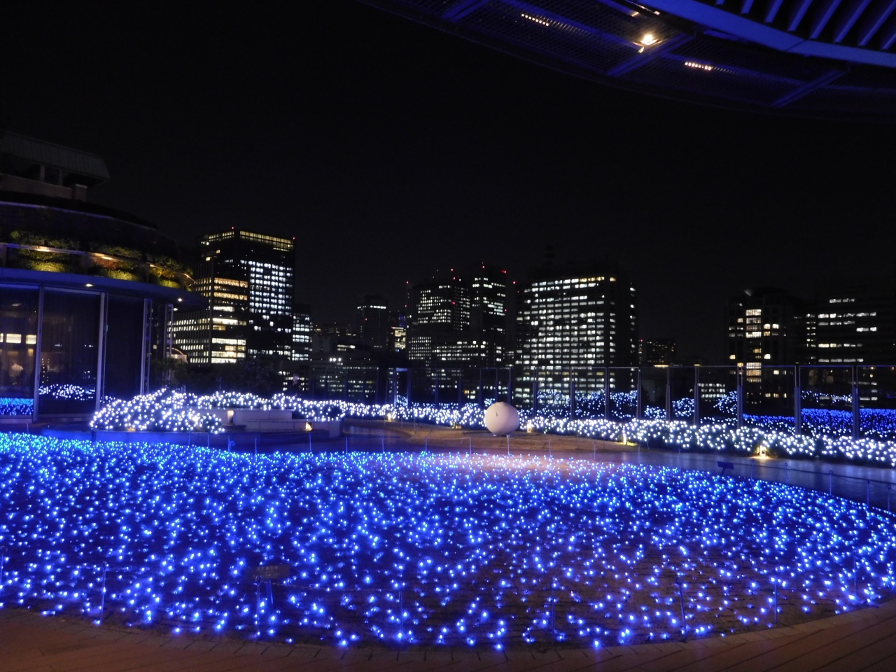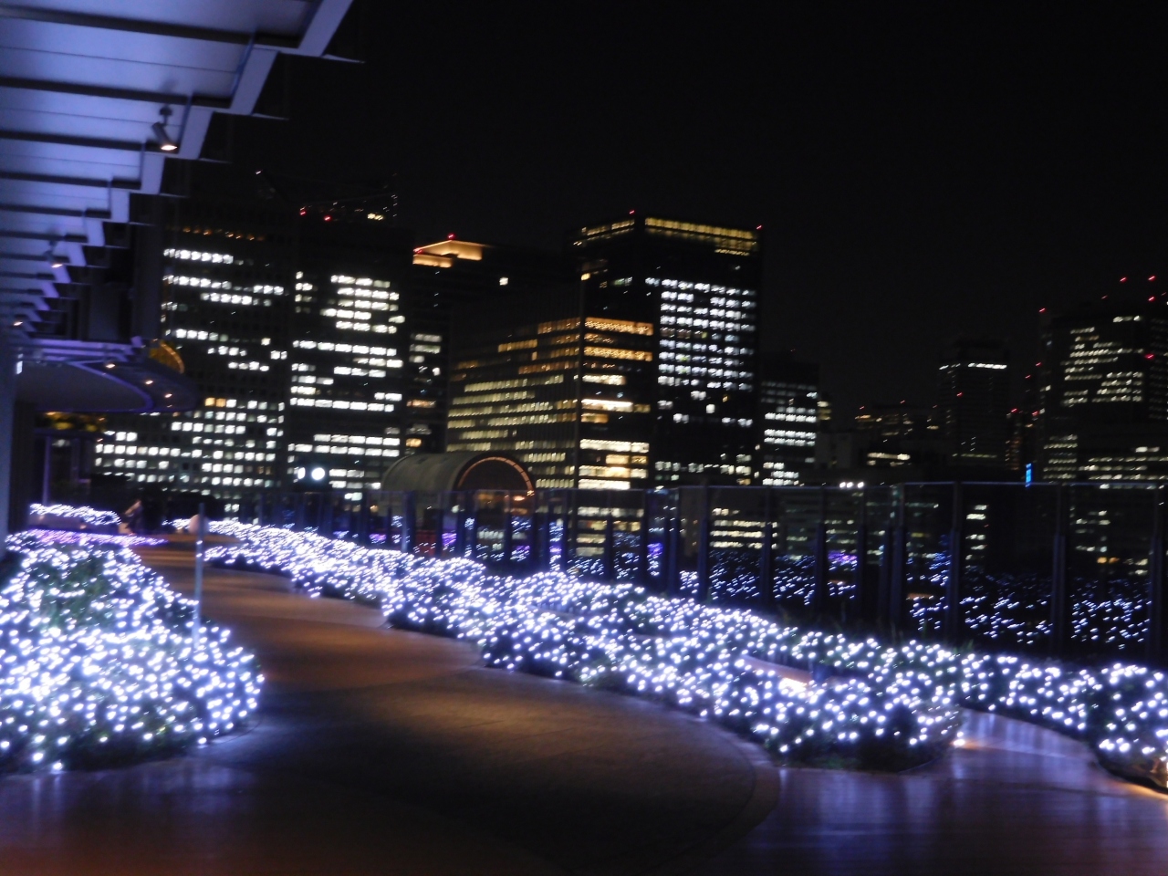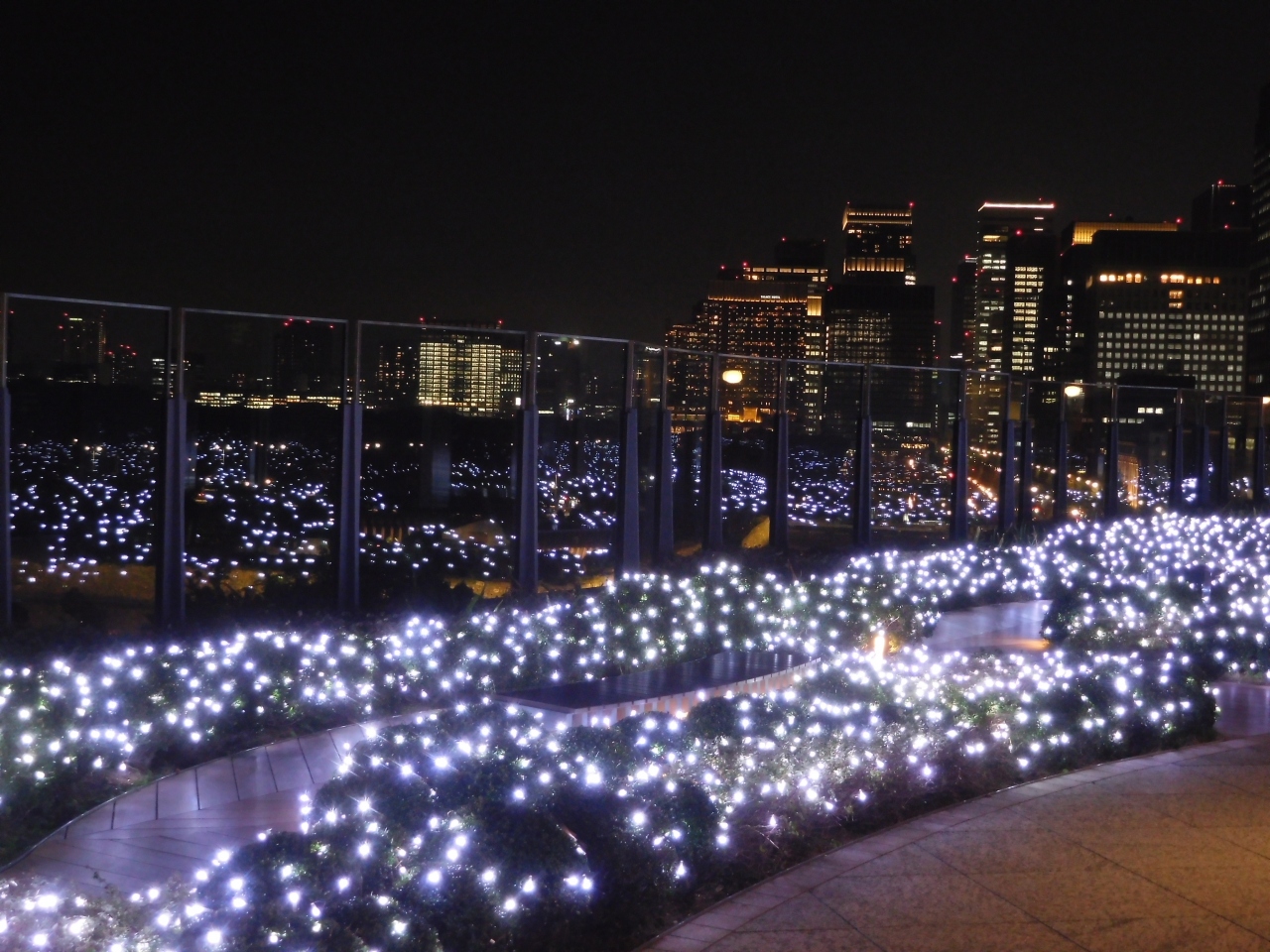 クリスマスの時期に「東京ミッドタウン日比谷」に訪れると、正面入り口付近にディズニーとコラボしたクリスマスツリーの装飾があったり、6階のパークビューガーデンが、一面に光り輝く幻想的なイルミネーションの演出がされていて、とても綺麗でした。周囲のオフィスビルの夜景とコラボしたような感じで、とても贅沢な夜景が楽しめて良かったです。