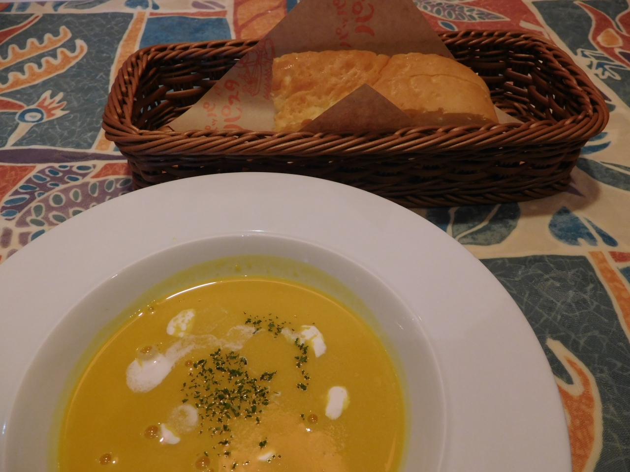 平日のランチは、週替わりのお得なメニューの中から選ぶ事が出来ました。セットのパンはお替り自由で、スパゲッティは細めのパスタで、オリーブオイルがたっぷり使われたソースでした。紅茶はポットで提供されたので、3杯たっぷりと頂く事が出来ました。店内は地中海をイメージしたような雰囲気で、店員さん達の「グラッチェ」という掛け声があったり、丁寧な対応をして頂けてとても良かったです。
