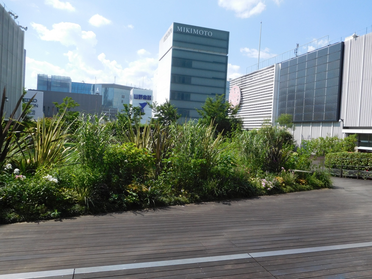 「銀座三越」の9階には、無料で開放されている「銀座テラス」があり、自由に利用する事が出来ますが、訪れたのが真夏の暑い時間帯であったので、ほとんど外に出ている人がいなく、とても閑散としていました。もっと気候のいい時期であれば、外の風を感じながら、休憩する事が出来ていい場所だと思いました。また、この銀座テラスの少し奥まった場所には「銀座出世地蔵尊」があります。