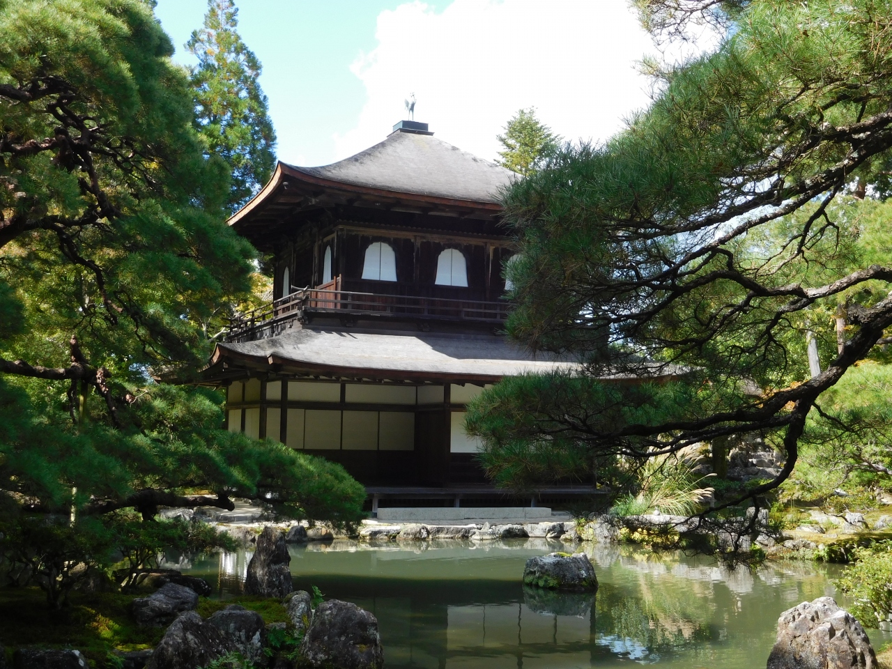 京都にある世界遺産の一つです。国宝の建物「東求堂」や「観音殿」自体も素晴らしかったですが、その周囲の池や木々がとても「和」の雰囲気を醸し出していて、思わずため息が出てしまう程、素晴らしい景色が見られました。石段を上り、展望台からの景色や、様々な角度から拝観する事が出来てとても良かったです。庭の苔がとても綺麗だったのも印象的でした。