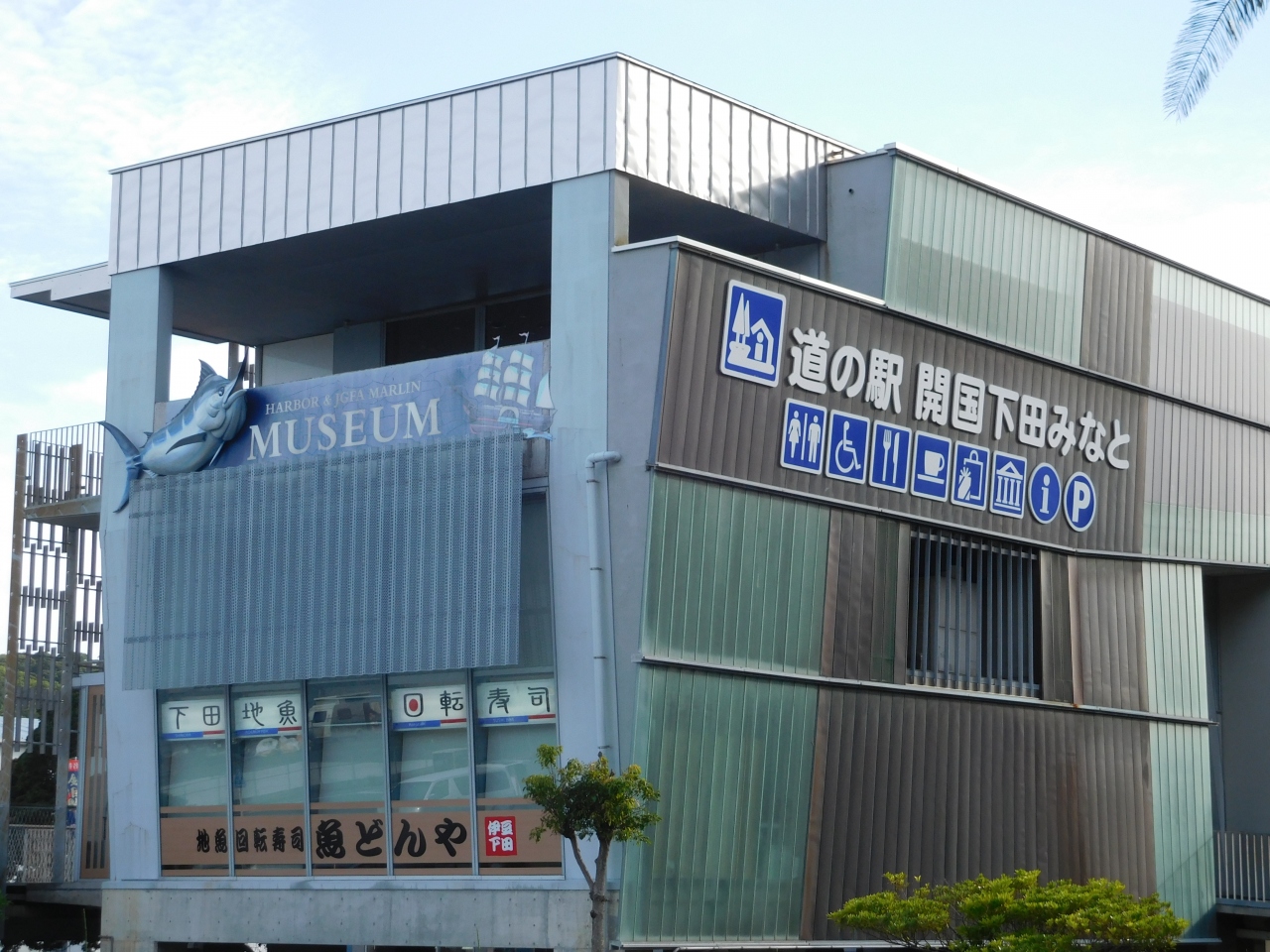 下田港に面した場所にある「道の駅」ですが、すぐ近くに漁協があるので、「海の駅」という感じでした。観光案内所やミュージアム、売店などが入っていますが、訪れたのが夕方17時過ぎだったので、残念ながらすでに閉館時間が過ぎていました。まさか17時で閉まってしまうとは思わなかったので、閉館時間には注意が必要です。