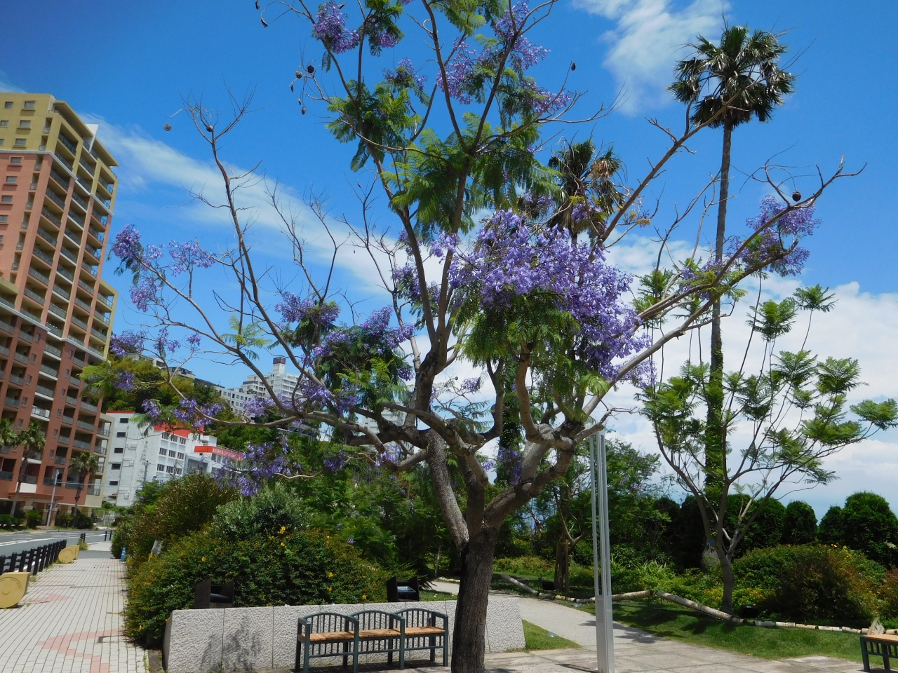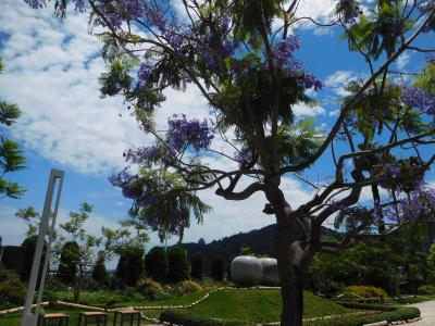 「お宮の松」のある「熱海サンビーチ」のすぐ近くに、「ジャカランダ遊歩道」があり、106本のジャカランダが植えられていました。綺麗に整備された遊歩道の両側に、ラッパ状の紫色の花が咲くジャカランダが綺麗に咲いていました。青空に綺麗な紫色の花が映え、とても綺麗でした。タイミング良く、「ジャカランダ フェスティバル2021」の期間中に訪れる事が出来て良かったです。