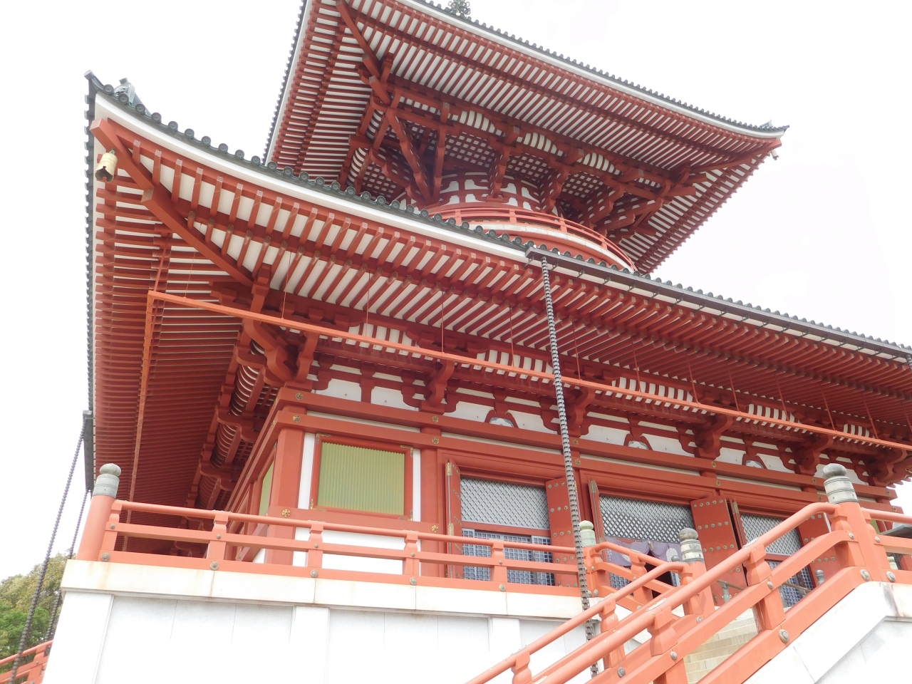 成田駅から成田山新勝寺へと続く参道で、駅前には「表参道」と書かれた、大きな石造りのモニュメントがあり、上には歌舞伎の演目「鎧獅子」の像がありました。駅周辺はあまりお店はありませんでしたが、成田山新勝寺に近づくにつれて、お土産屋さんなどのお店が増えている感じでした。平日だった事もあり、観光客がほとんどいないので、どのお店も店員さんが待ち構えているような感じでした。