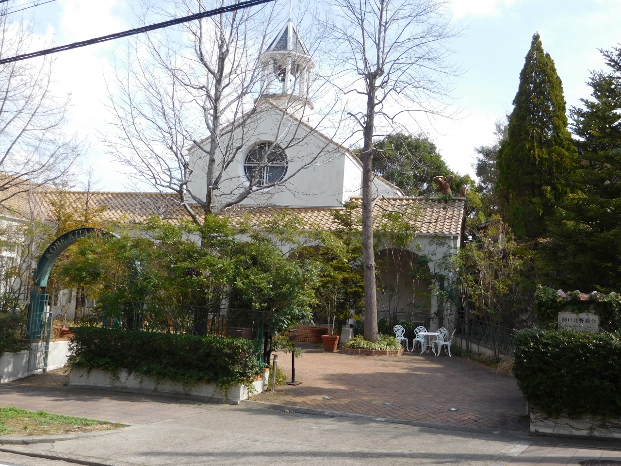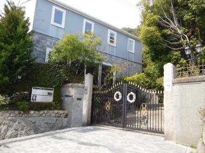 北野異人館の「うろこの家」などを見学した後、北野町広場方面へと向かう閑静な道を歩いていると、立派なお屋敷があり、それが「神戸北野ハンター迎賓館」でした。結婚式場として利用され、通常の一般公開はされていないようで、入口の門はしっかりと閉ざされていました。門にはHのマークが入っていて、白色の花輪が掛けられていました。とても立派な雰囲気だったので、中の様子がとても気になる場所でした。