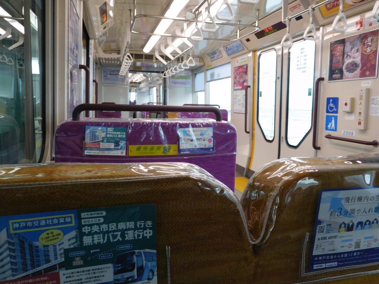 神戸市の市営地下鉄で、新神戸駅から県庁前駅までの2駅で利用しました。とてもシックな色使いの車両で、グリーン色の座席はすごくフワフワな印象でした。新神戸駅と三宮駅は乗降者がとても多かったのですが、県庁前駅を利用している人はあまりいなく、意外に感じました。
