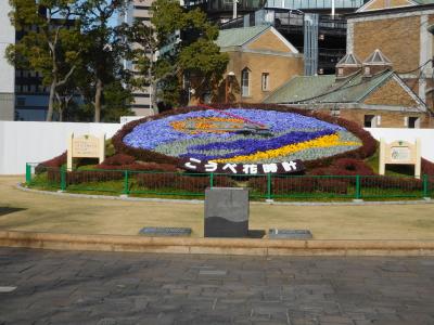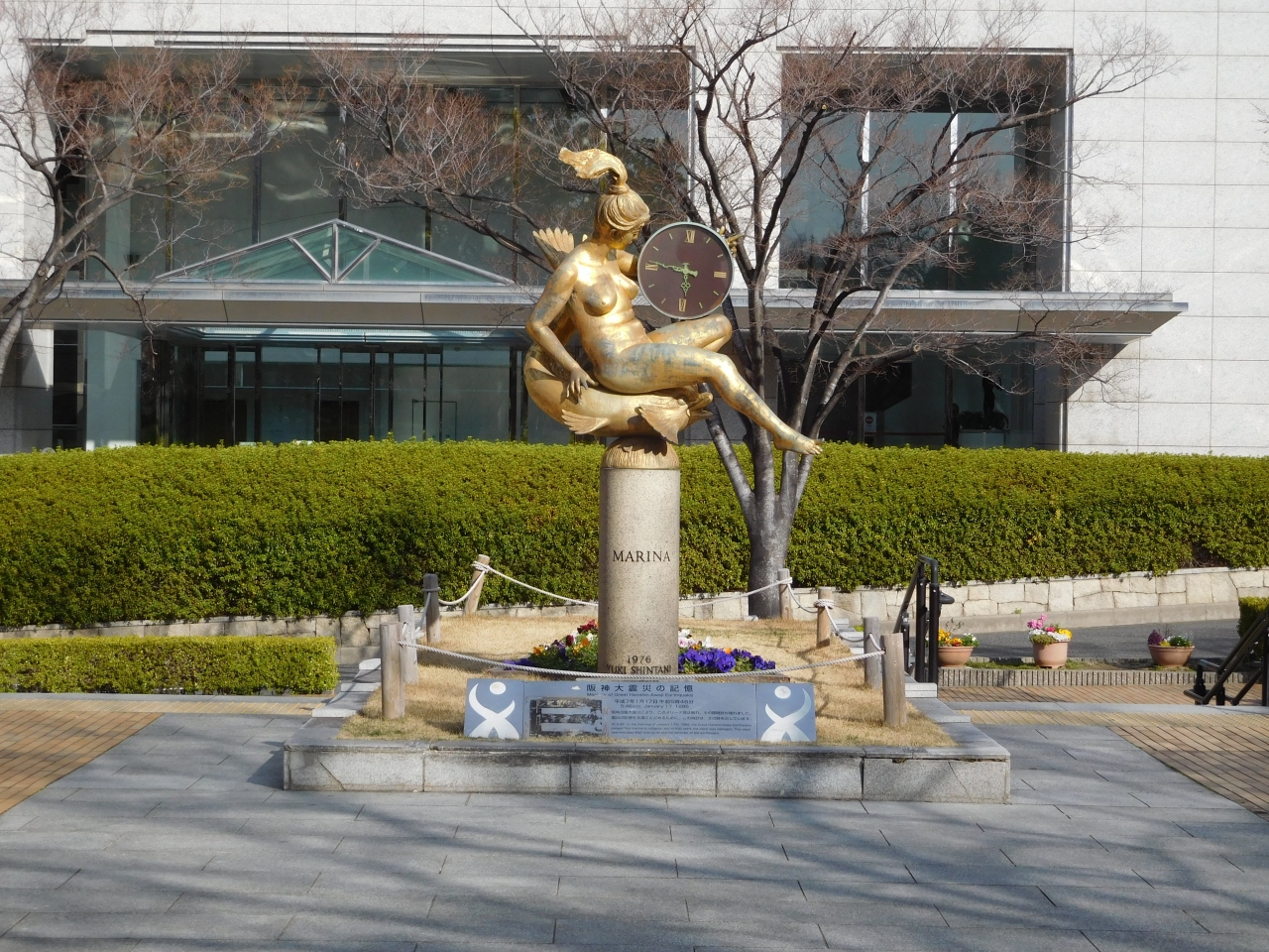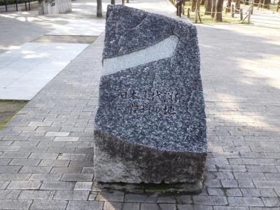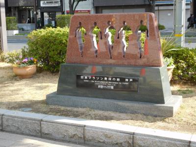 神戸市役所前のフラワーロード沿いに、「日本マラソン発祥の地碑」がありました。黒色の土台の上に、赤色の石碑があり、5人のマラソンランナーの姿がくり抜かれる形になっていました。なかなか珍しいデザインの石碑で、印象に残りやすいと思いました。