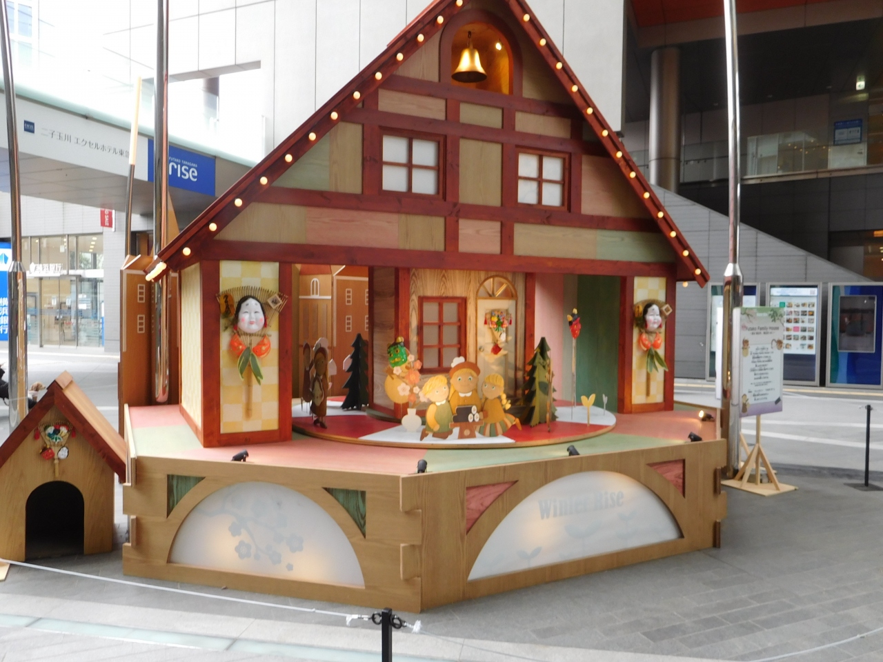 二子玉川駅の改札を出てすぐの場所にある商業施設で、いくつかの建物に分かれています。ファッションや雑貨のお店などが多く入っていて、地下には東急フードショーがあり、かなり充実しています。各フロアを回りながら、ショッピングをしました。また、外のイベント広場に設置されたクリスマスハウスが、節分バージョンになっていました。