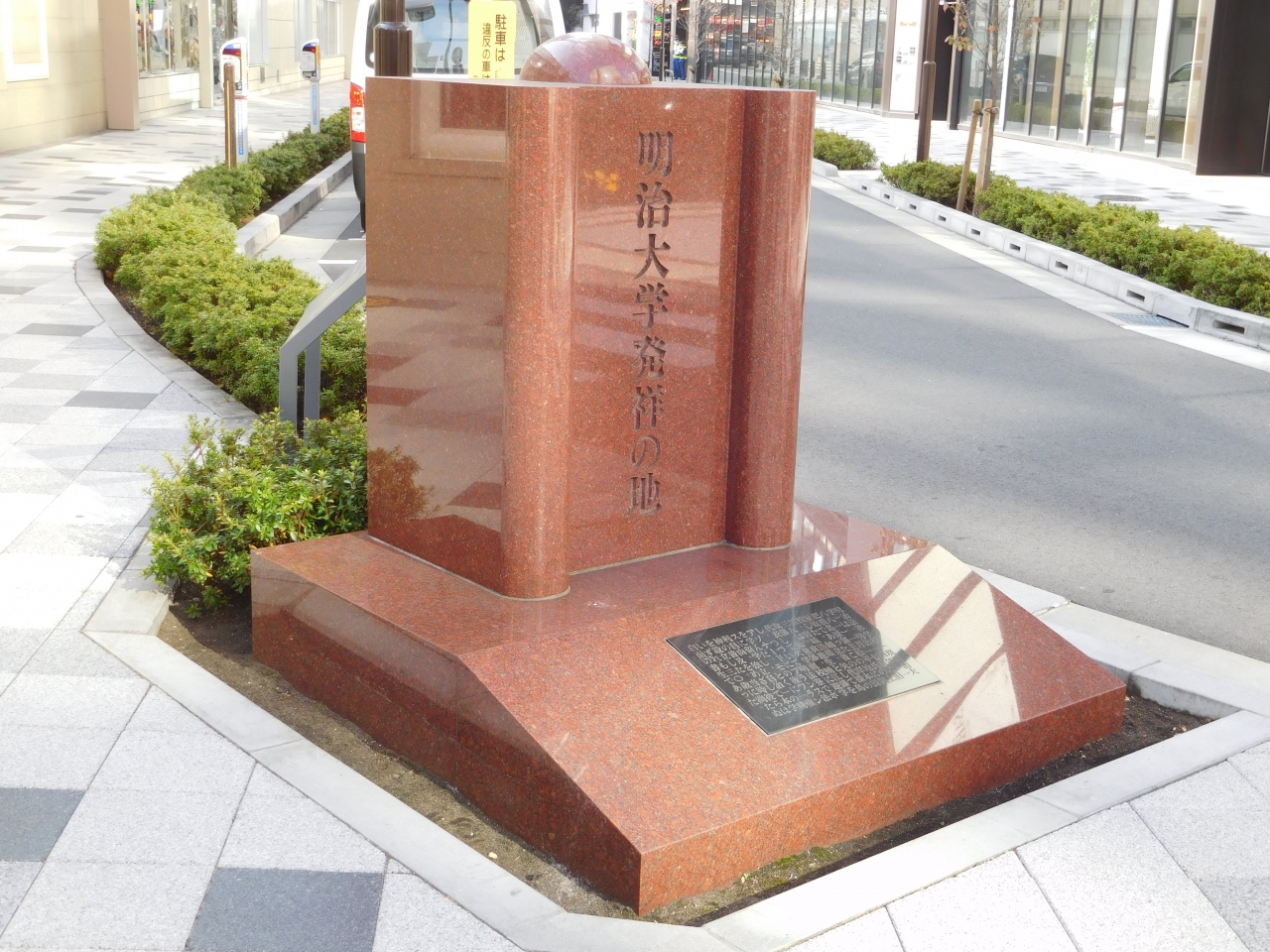 数寄屋橋交差点から日比谷公園方面へ、晴海通り沿いに歩いていると、ちょうど銀座ファイブの建物の横辺りにレンガ色の石碑がありました。以前、5-6年前にこの石碑を見た時は、植え込みの横だったと記憶していますが、周囲の歩道が綺麗に整備されたので、一見、郵便ポストのようにも見えるような気がしました。