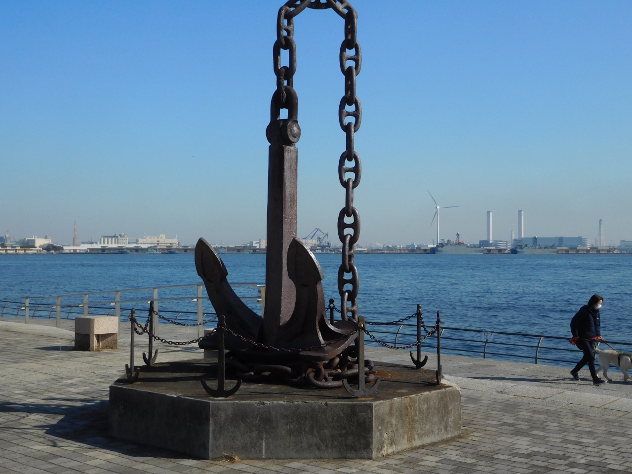 「臨港パーク」の海に面した場所に、大きな碇のオブジェがありました。船が碇をおろす際は、こんなにも大きな碇を使っているのかと、驚きました。碇の周りをぐるっと見ても、説明板が無かったので、どんな船で使われていたのかは分かりませんでした。